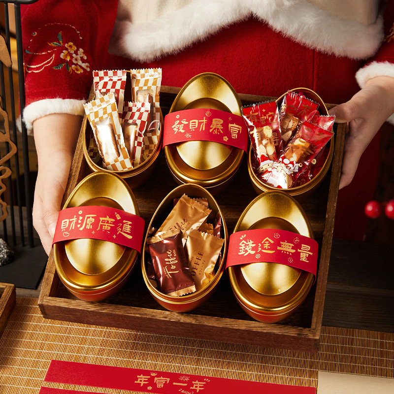 📚 新年马年金元宝礼盒包装太妃糖果高级伴手礼物礼品盒铁盒喜糖盒空