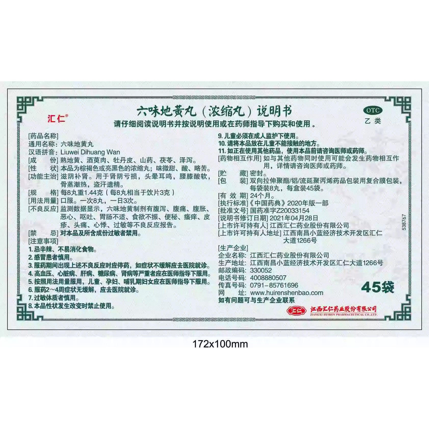 📚 汇仁六味地黄丸六位地黄地丸120丸/盒补肾虚健脾益肾盗汗肾宝男女