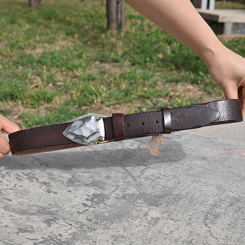 📚 鲲鹏展翅头层纯牛皮腰带新款男款针扣真皮男士皮带牛仔裤复古硬汉
