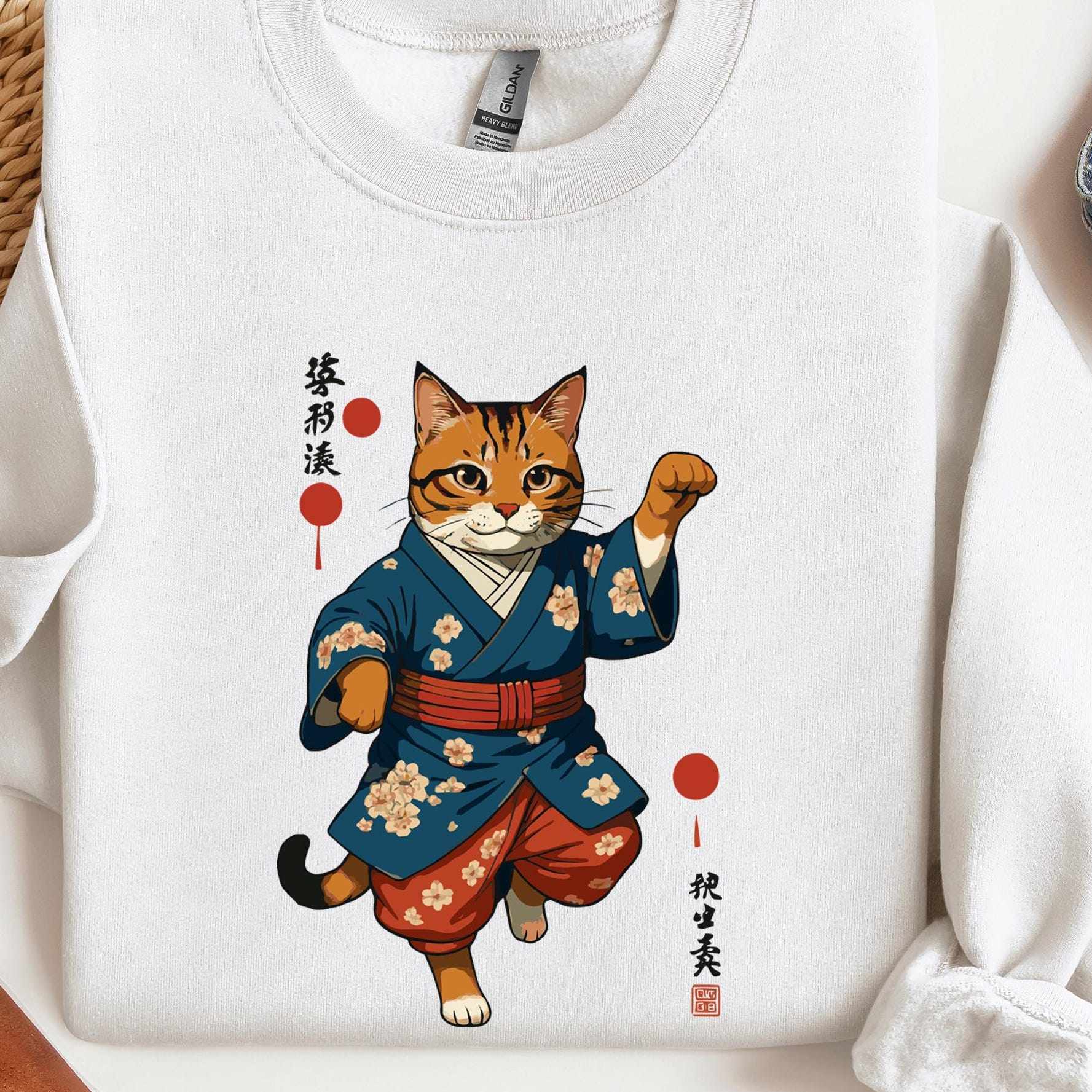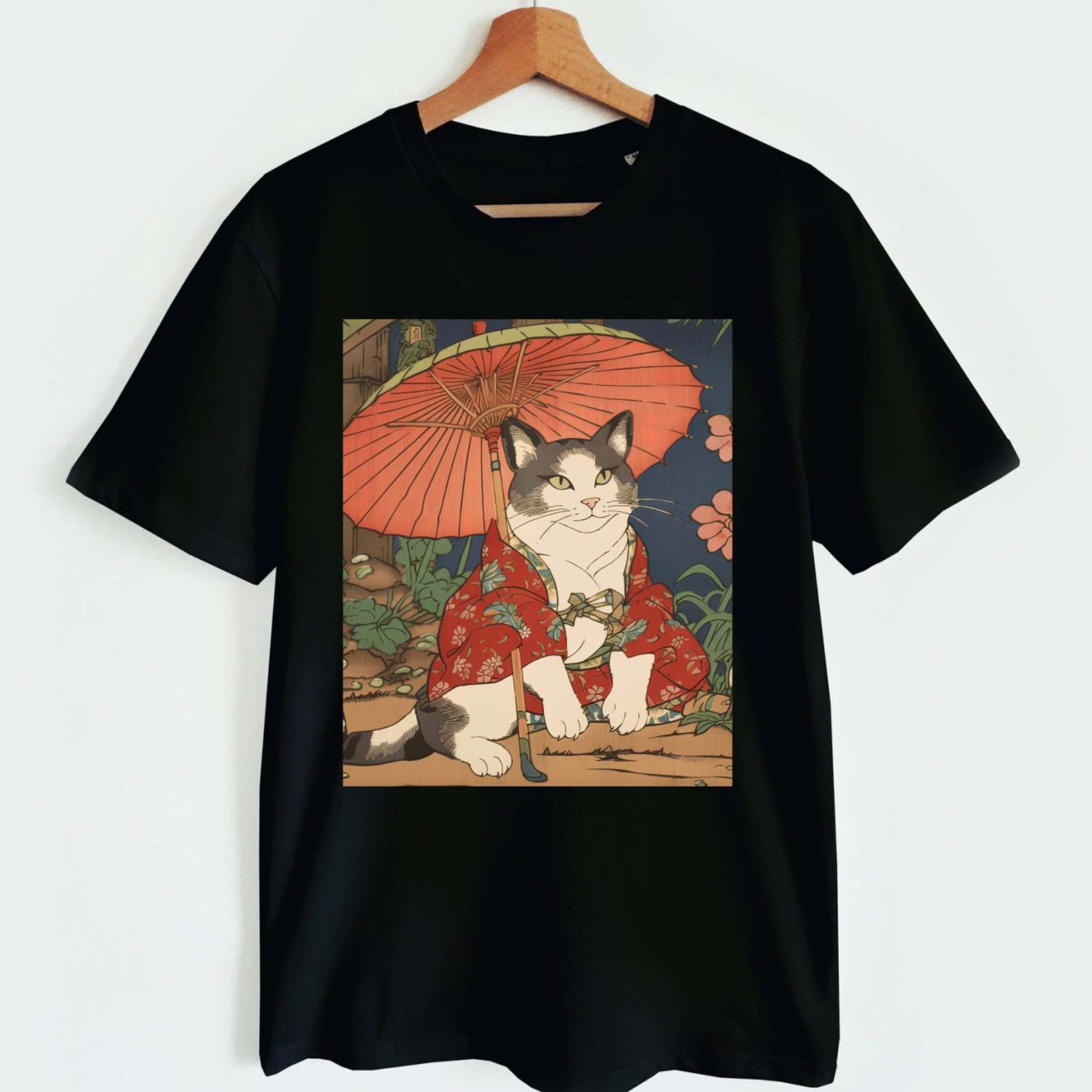 📚 cat日本浮世绘猫咪可爱纯棉水洗做旧t恤男女同款hiphop短袖