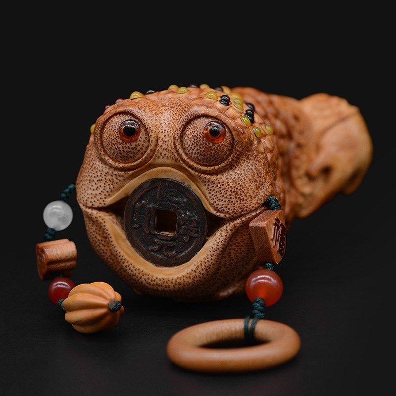📚 竹根雕欢老师孤品金蟾手把件铜钱蟾蜍文玩手捻收藏把玩件