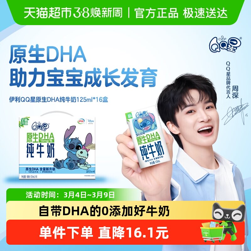 📚 【周深同款】伊利QQ星原生DHA儿童成长高钙纯牛奶125ml*16盒