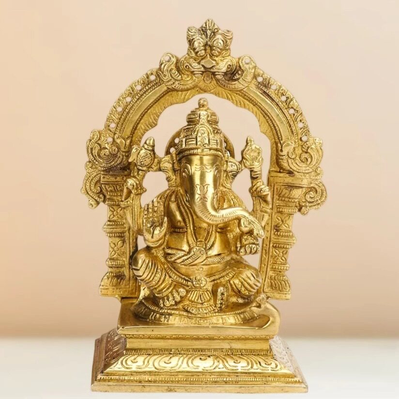 📚 印度国际直邮手工黄铜Ganesha象头神像雕像带框 7 英寸正能量祝福