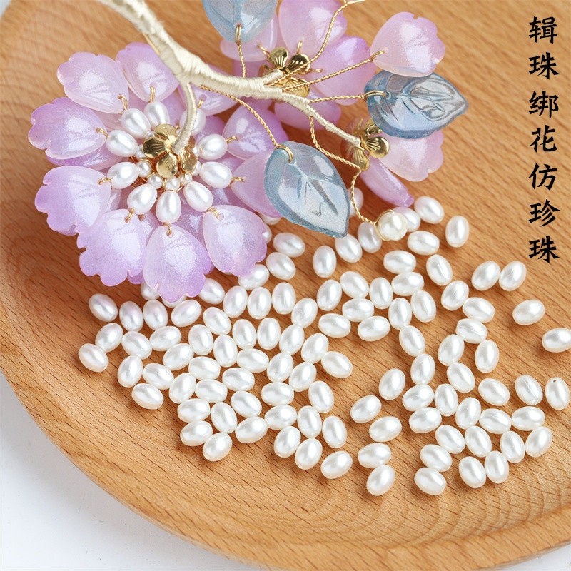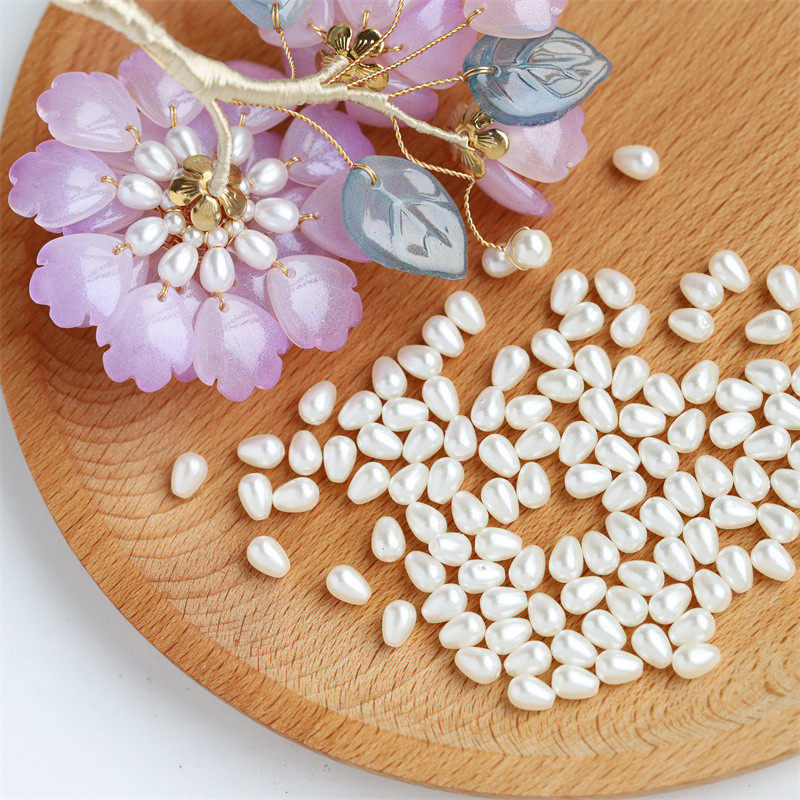 📚 diy饰品配件辑珠绑花底托5*7水滴椭圆abs仿珍珠diy琉璃古风配件