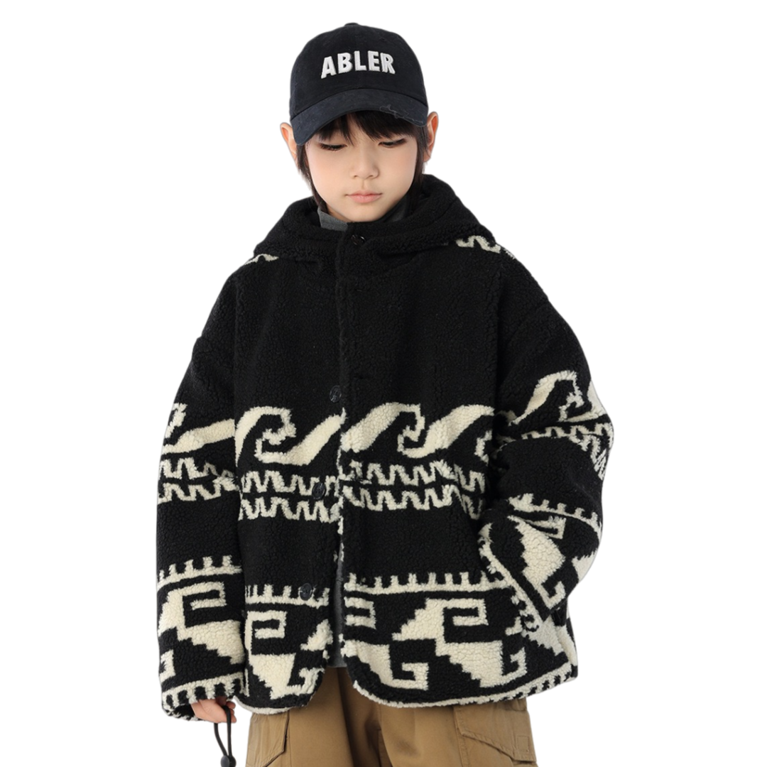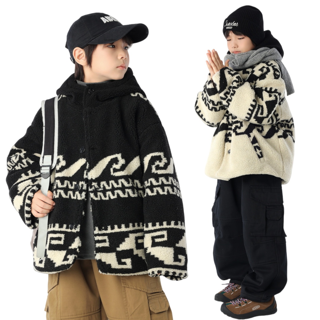 📚 男童冬季保暖夹棉羊羔绒连帽棉服外套 儿童帅气日系宽松保暖棉衣