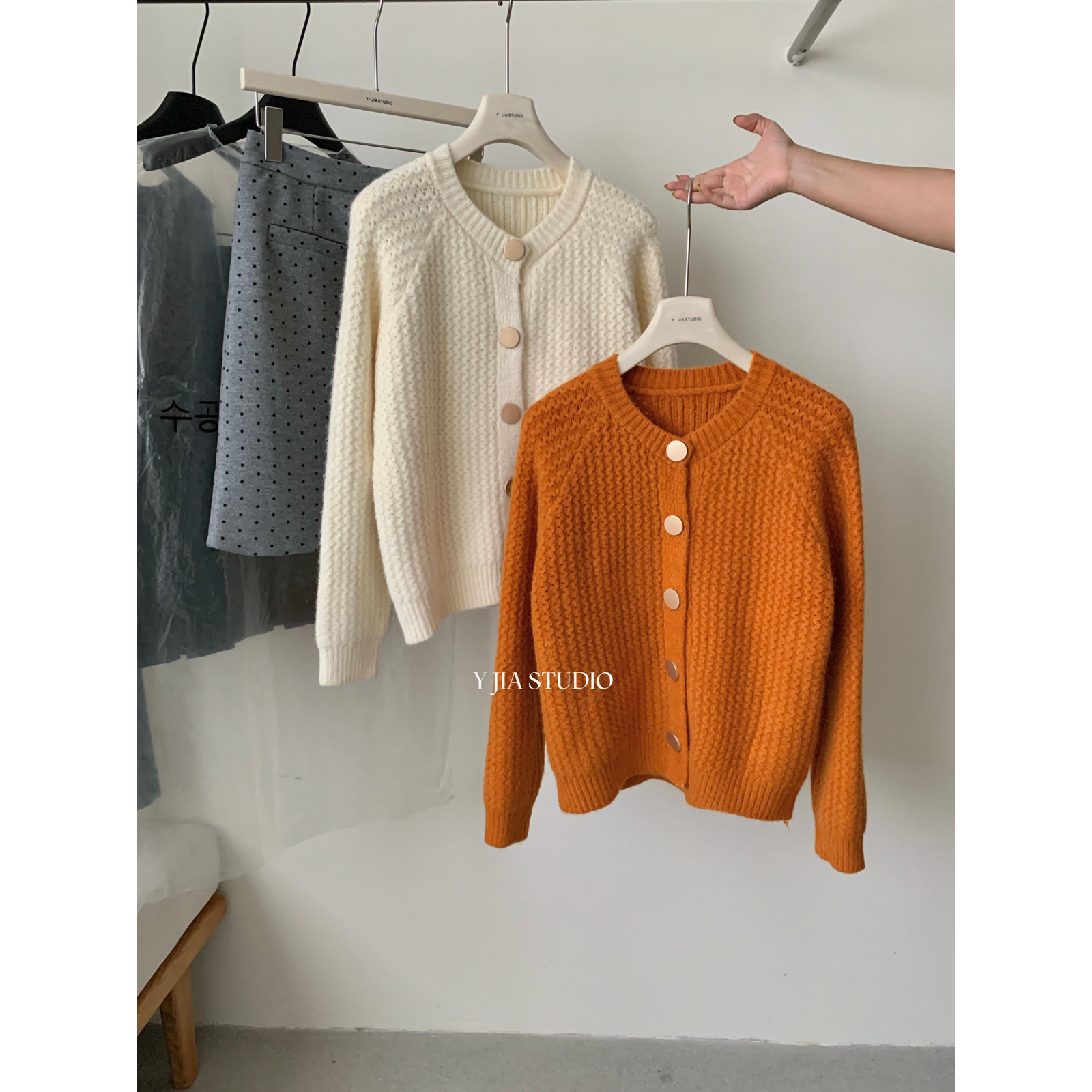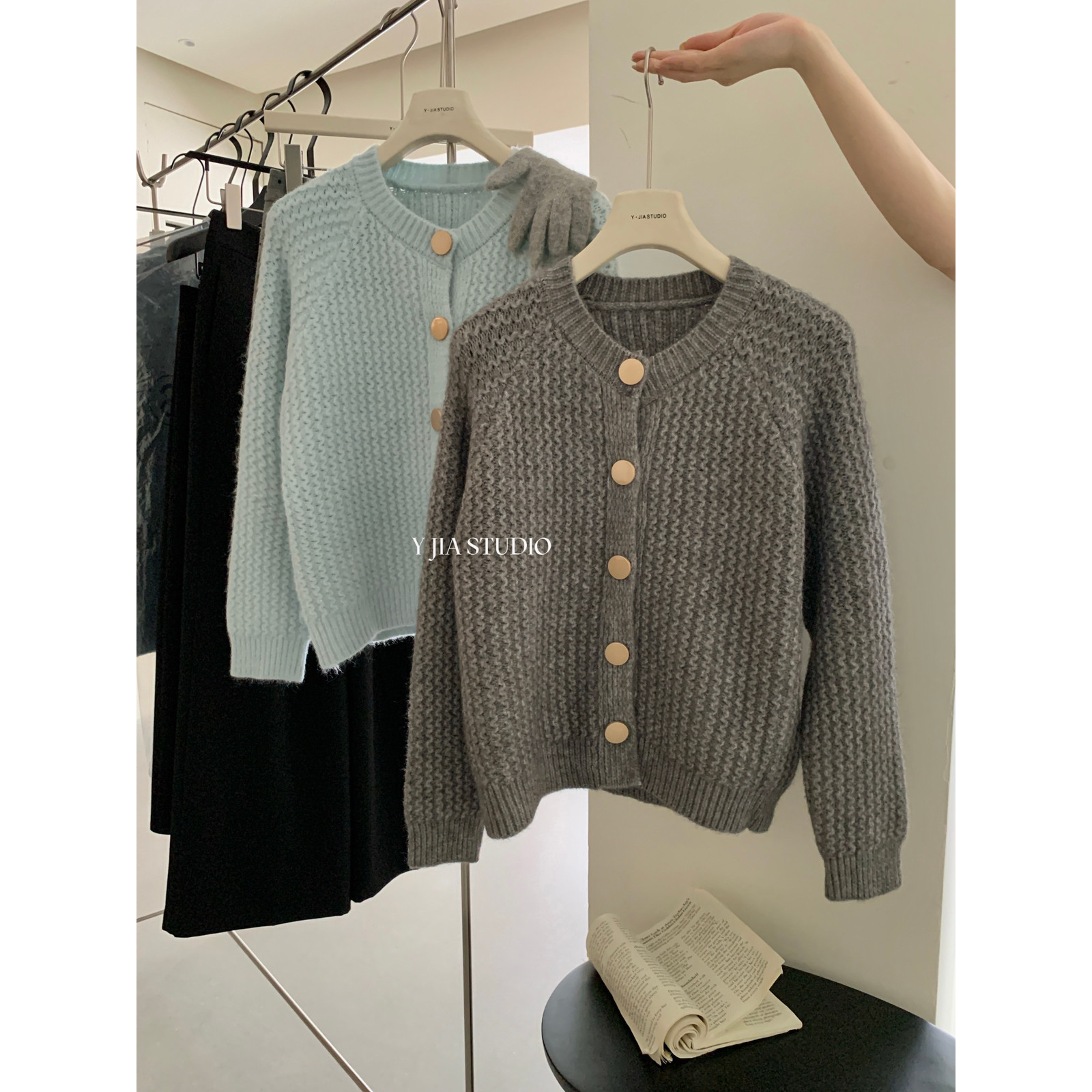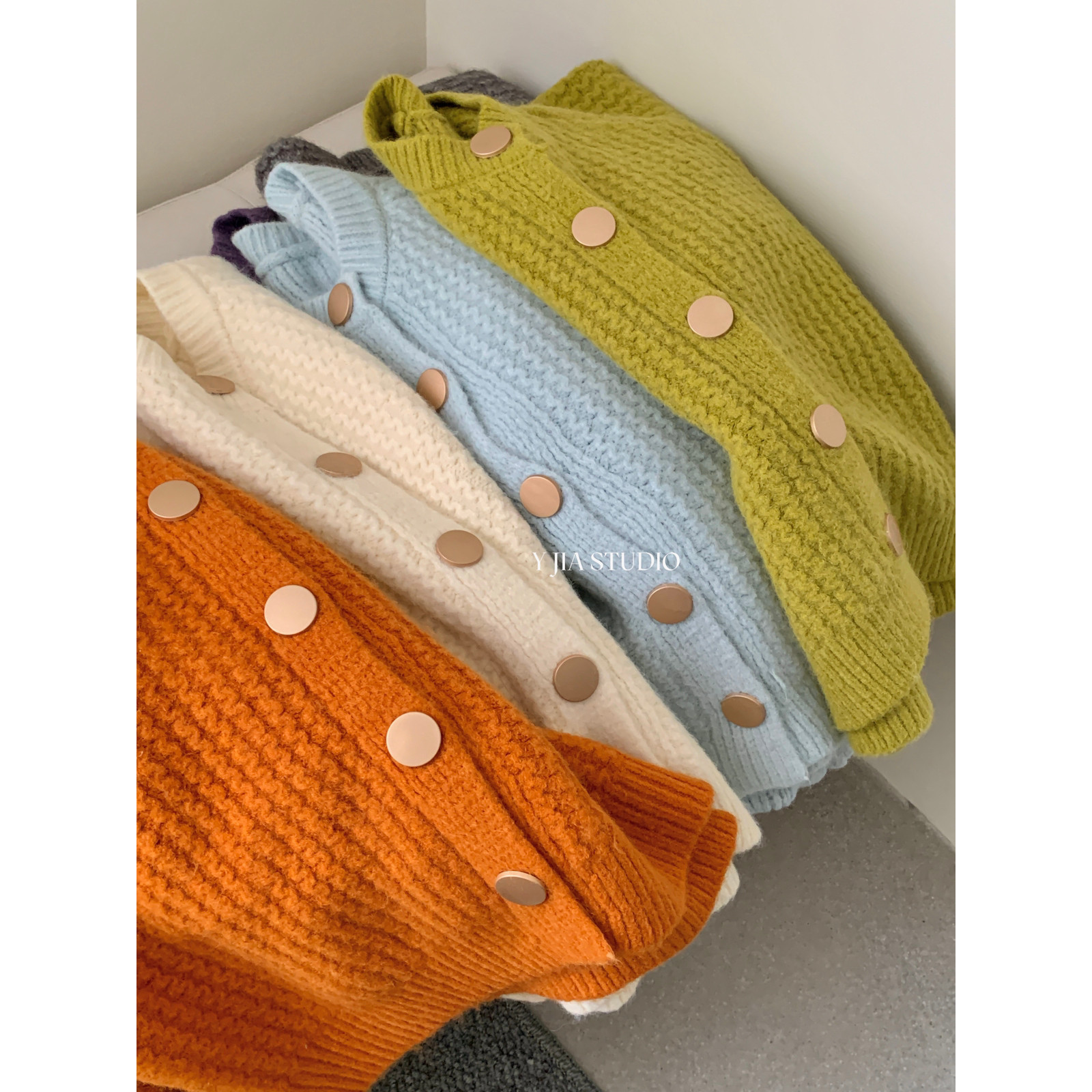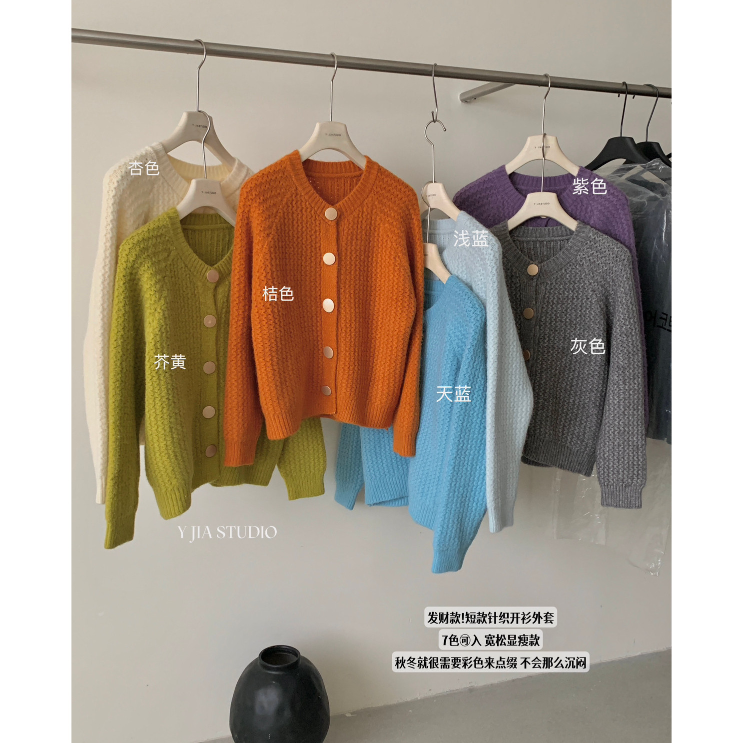 📚 Y.JIA伊嘉秋冬糖果色系粗针织短款针织开衫外套保暖毛衣女1018-55