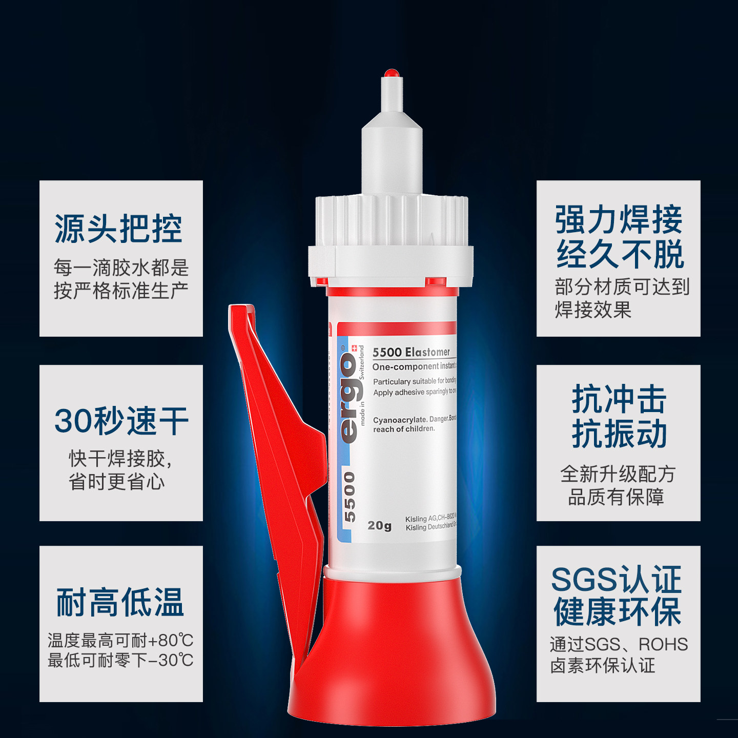 📚 瑞士进口ergo.5500强力焊接剂胶水防水速干正品粘得牢多功能专用胶木头塑料玻璃金属电焊胶手工502强力胶快干