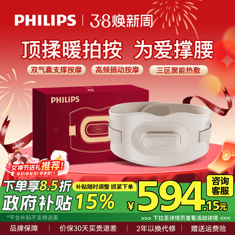 📚 飞利浦撑腰宝腰部按摩仪暖宫腰带护腰带缓解腰疼神器三八节礼物