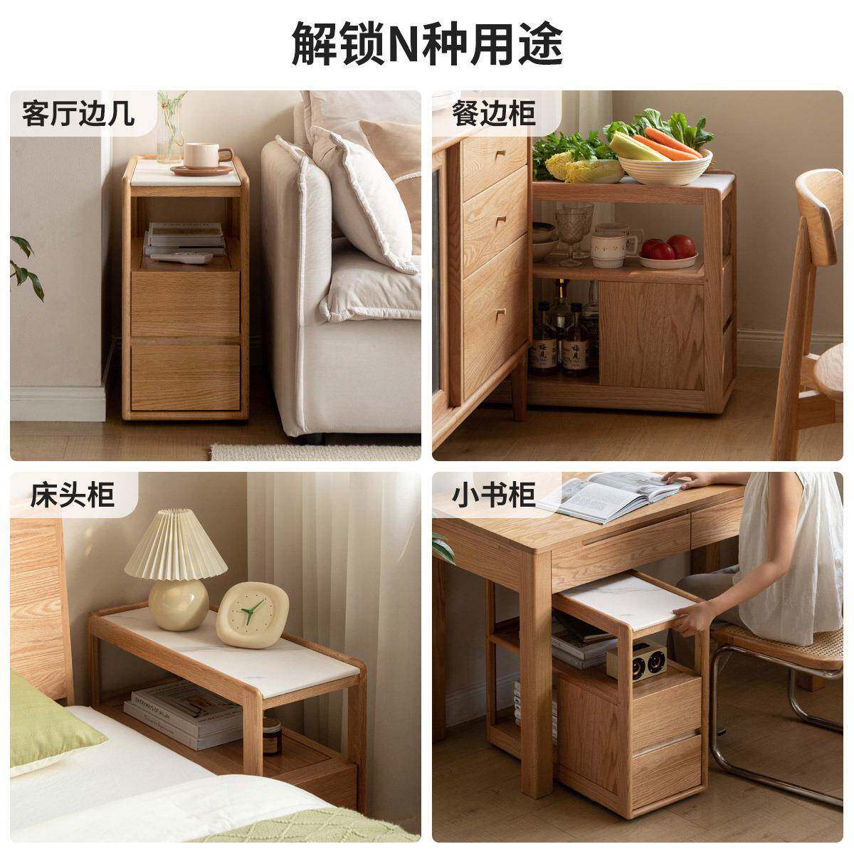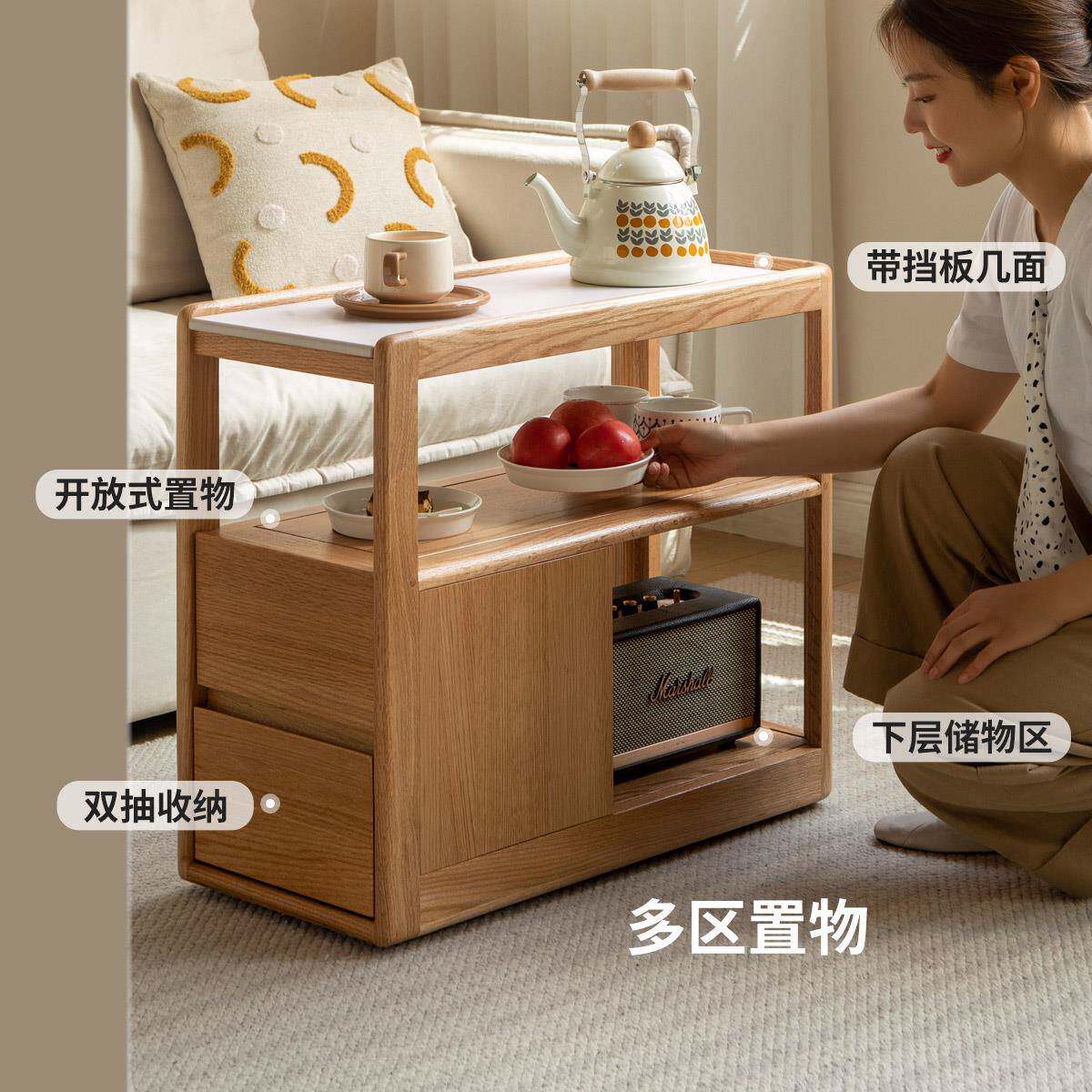 📚 实木沙发边几岩板侧边欧小户型边茶几客北厅74404角几可几移动窄
