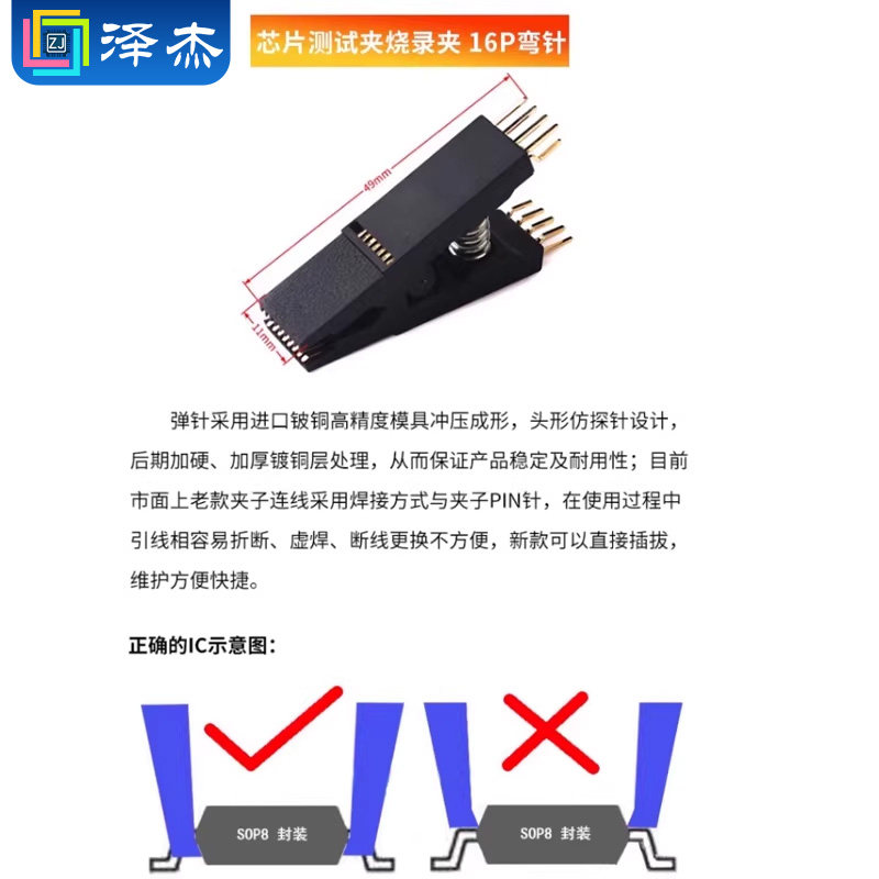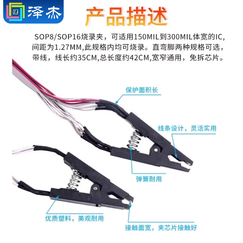 📚 CH341A/B编程器免拆测试夹SOP8/16BIOS烧写线IC测试线芯片烧录座