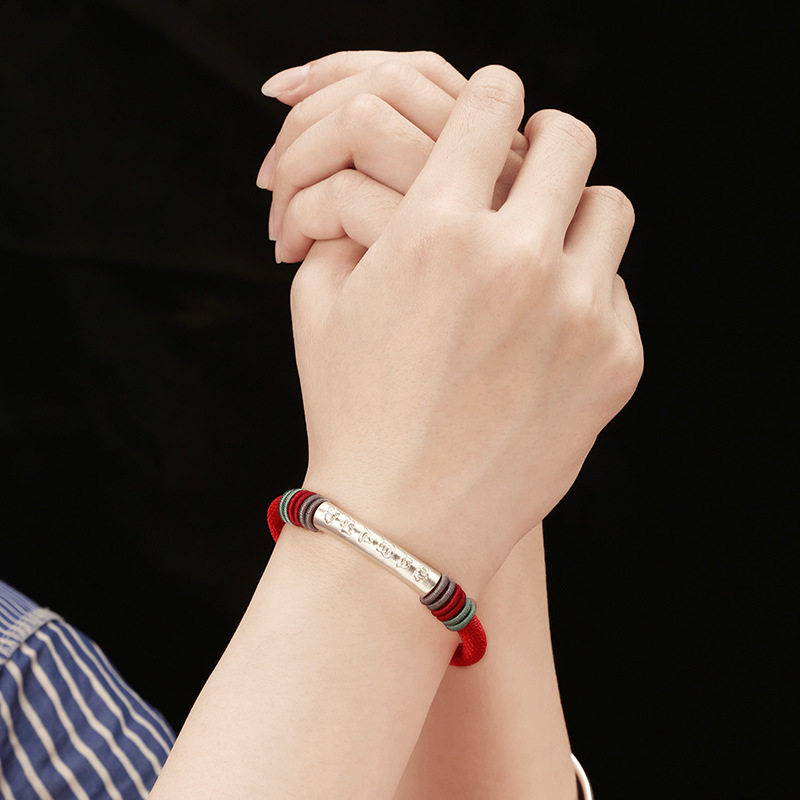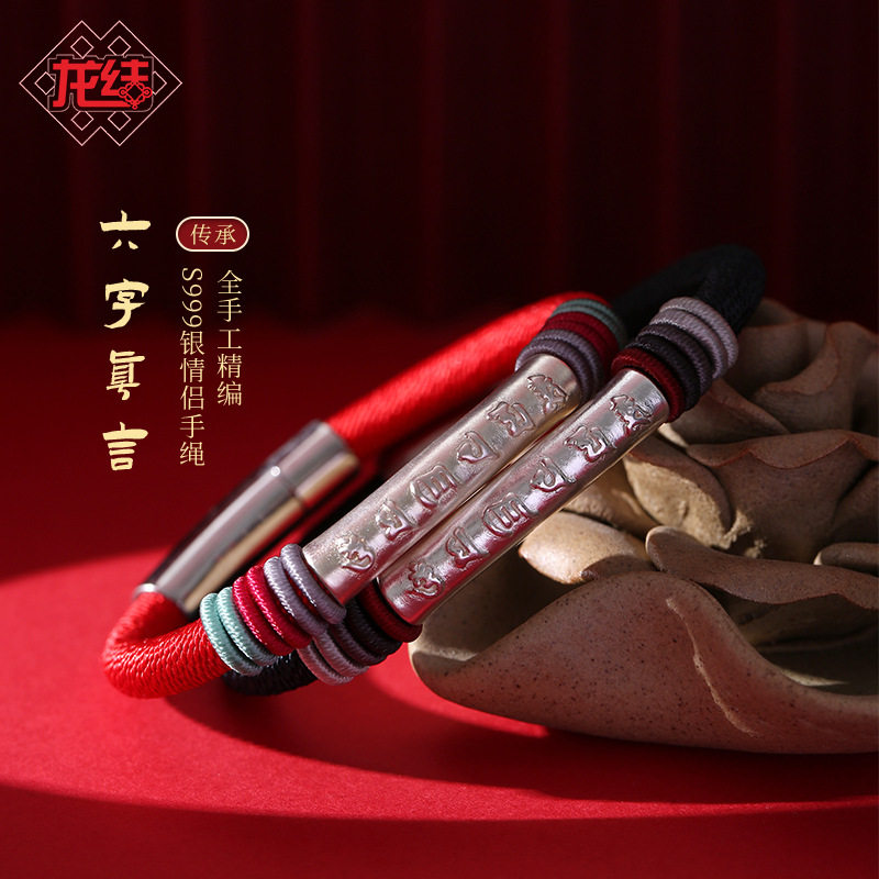📚 龙结六字真言情侣民族风手绳足银饰品手链时尚上新国潮系列厂家批