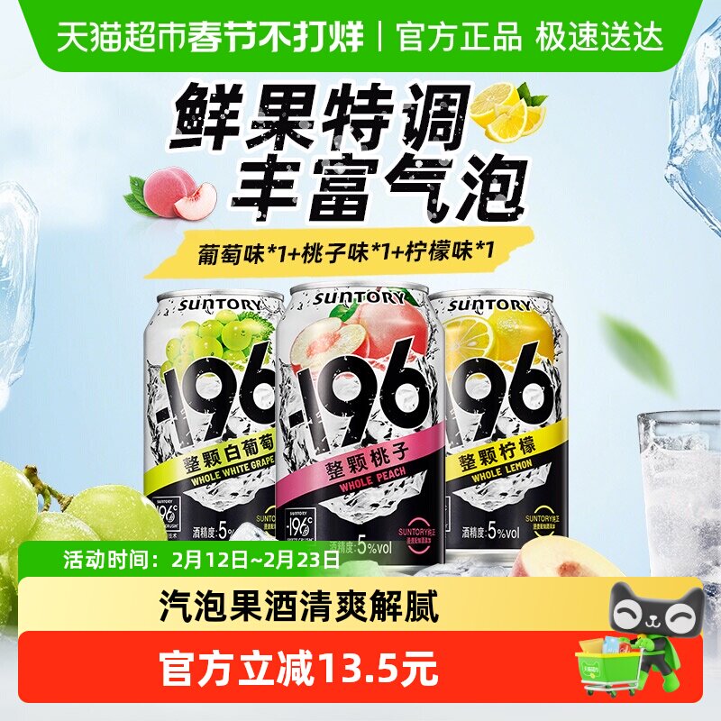 📚 SUNTORY三得利-196汽泡酒330ml*3罐(葡萄味+桃子味+柠檬味)