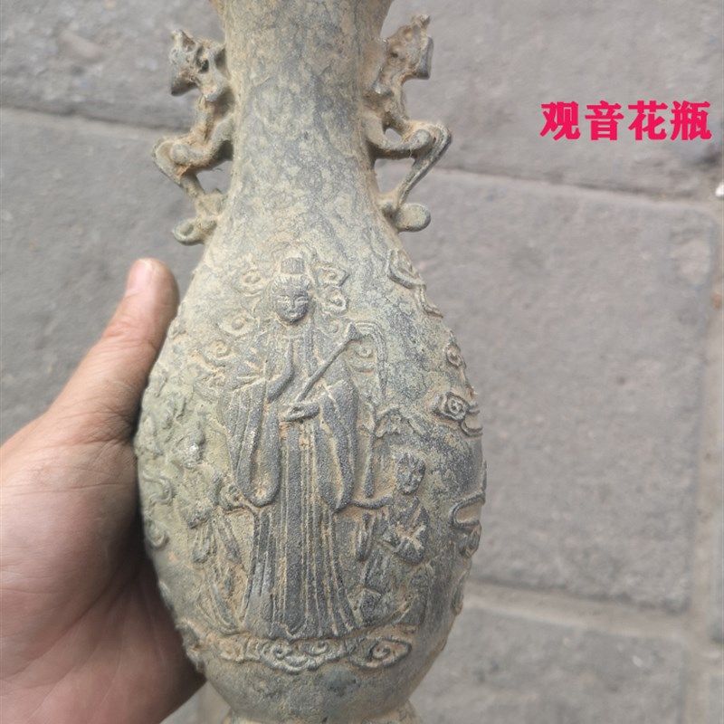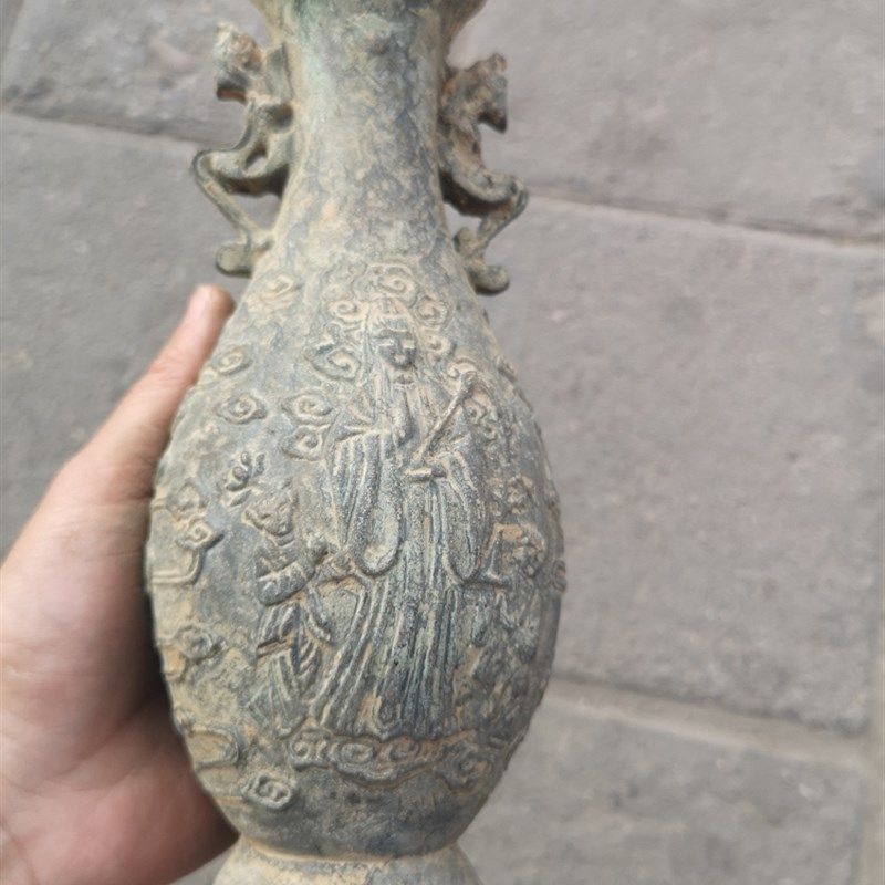 📚 仿古出土纯铜观音菩萨花瓶宝瓶松子观音铜摆件家居装饰