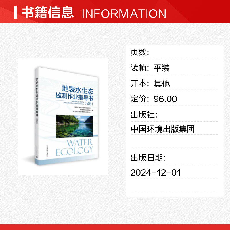 📚 地表水生态监测作业指导书(试行) 生态环境部生态环境监测司,中国环境监测总站,生态环境部卫星环境应用中心 编 环境科学专业科技