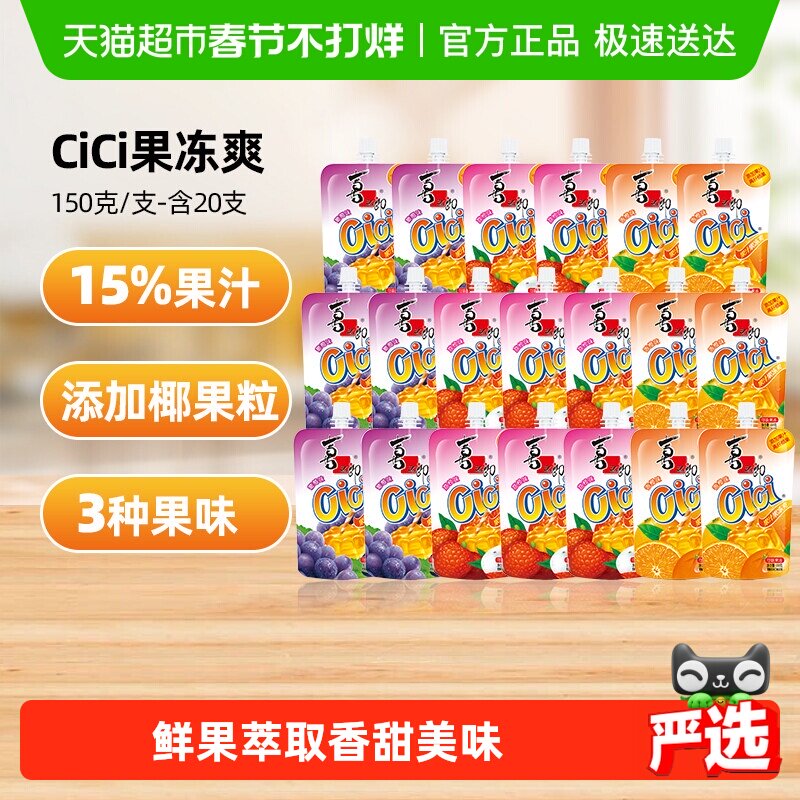 📚 喜之郎Cici椰果粒果冻爽150g*20支网红小零食儿童吸吸冻休闲饮料