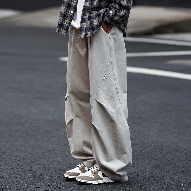 📚 拾壹CityBoy日系伞兵工装裤2024秋季男生宽松廓形抽绳直筒阔腿裤