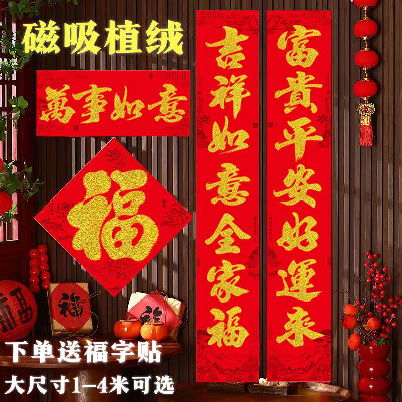 📚 磁吸对联2026年新款金粉植绒春联新年春节装饰入户大门大尺寸高档