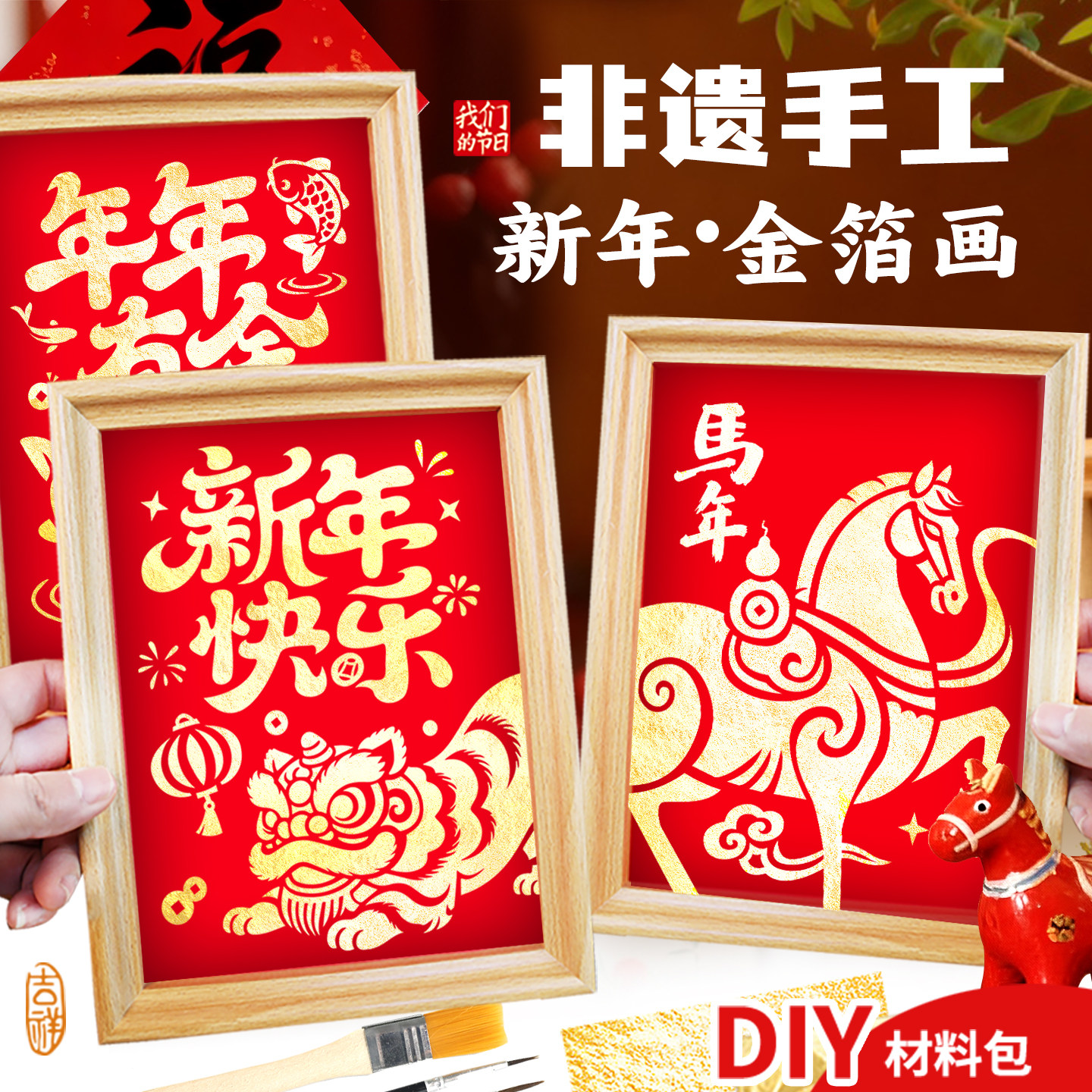 📚 新年手工马年金箔画diy春节手作材料传统非遗年画元旦活动半成品
