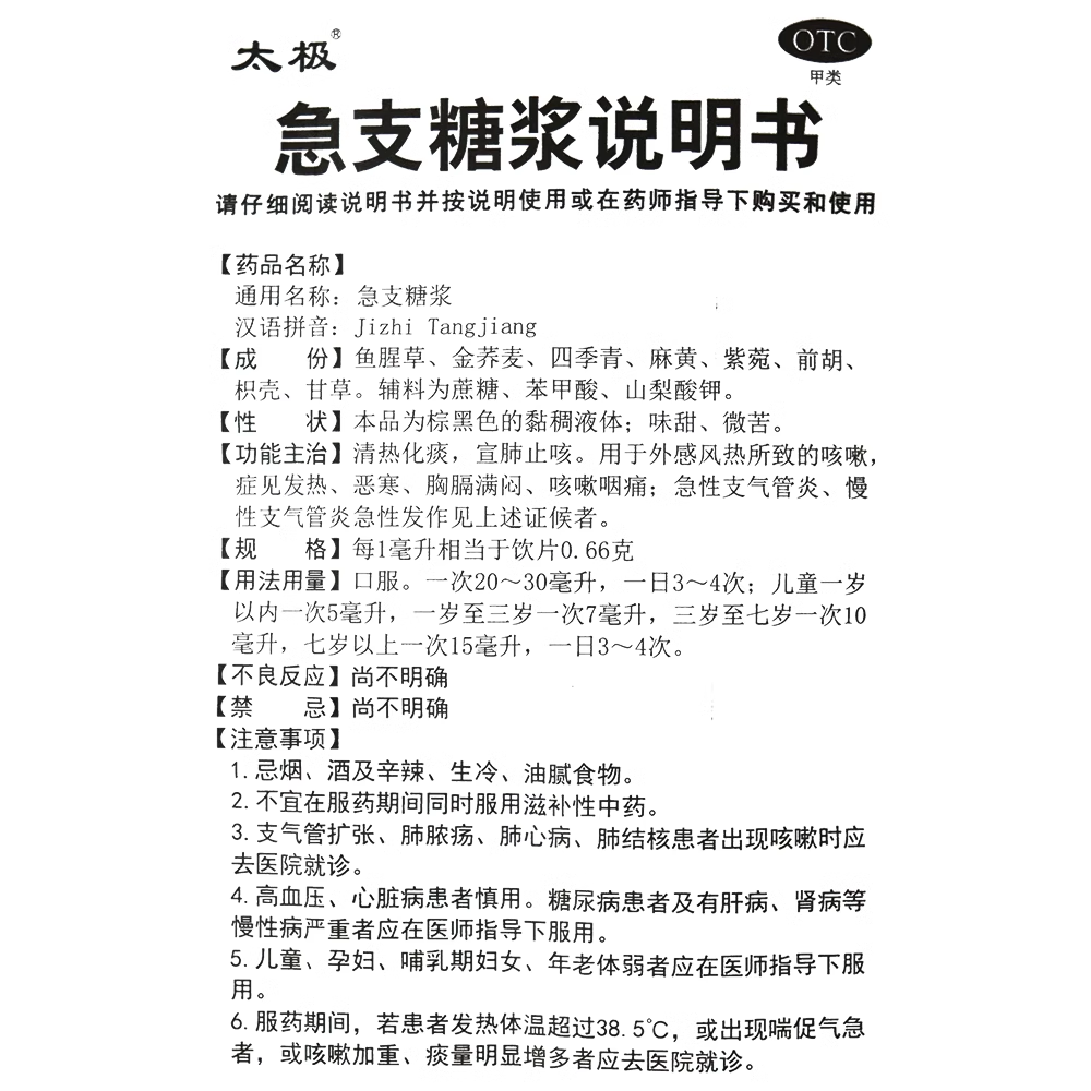 📚 太极急支糖浆180ml正品太极支气管炎清热化痰宣肺止咳