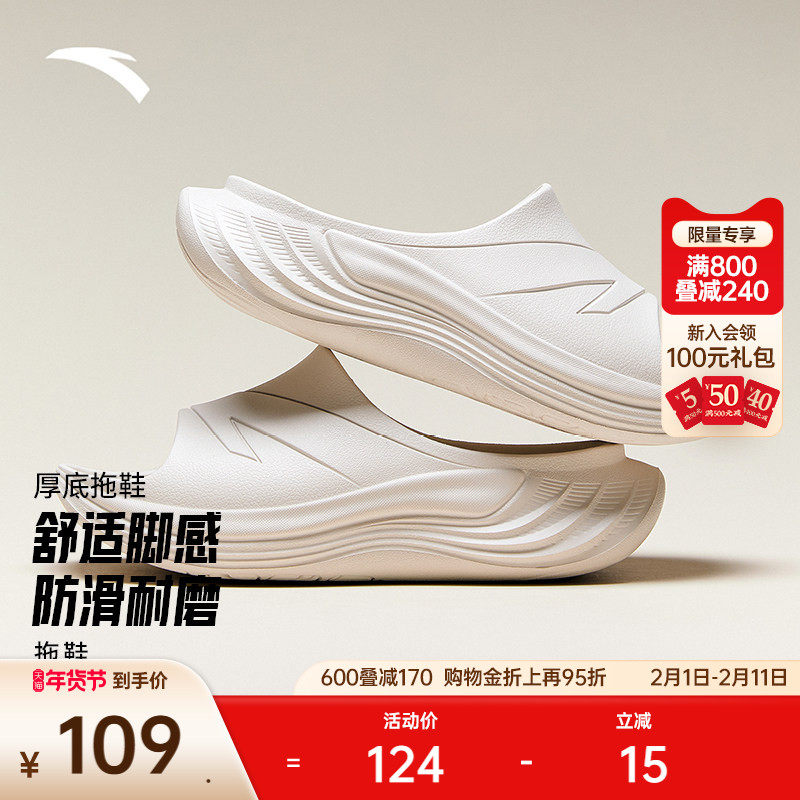 📚 安踏男子防滑拖鞋外穿新款轻便舒适厚底增高透气凉拖鞋112538528