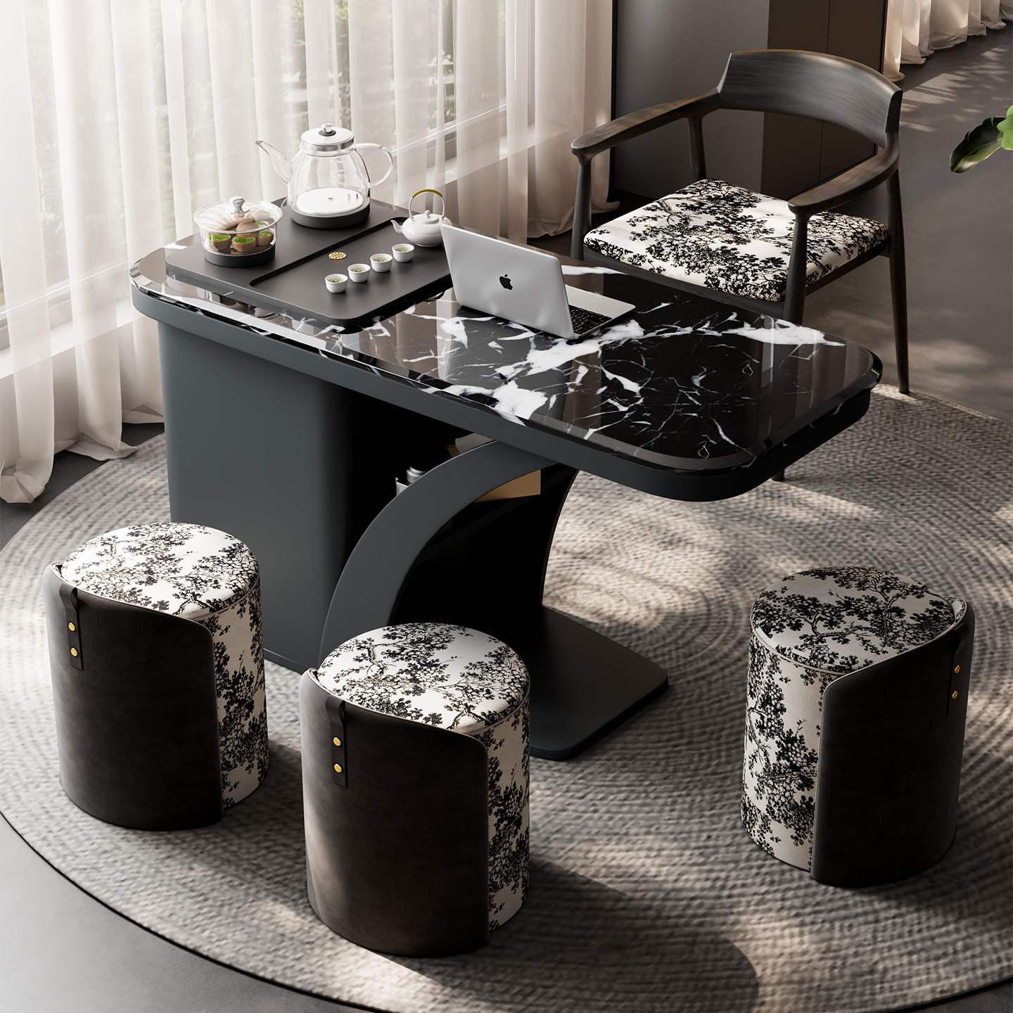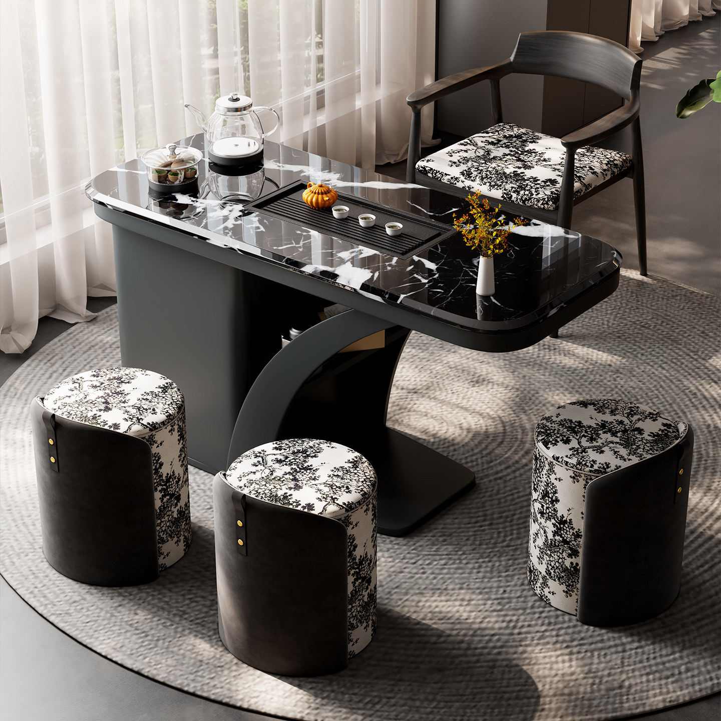 📚 意式极简超晶石茶台轻奢现代高级感茶桌新款高端阳台小茶桌椅组合