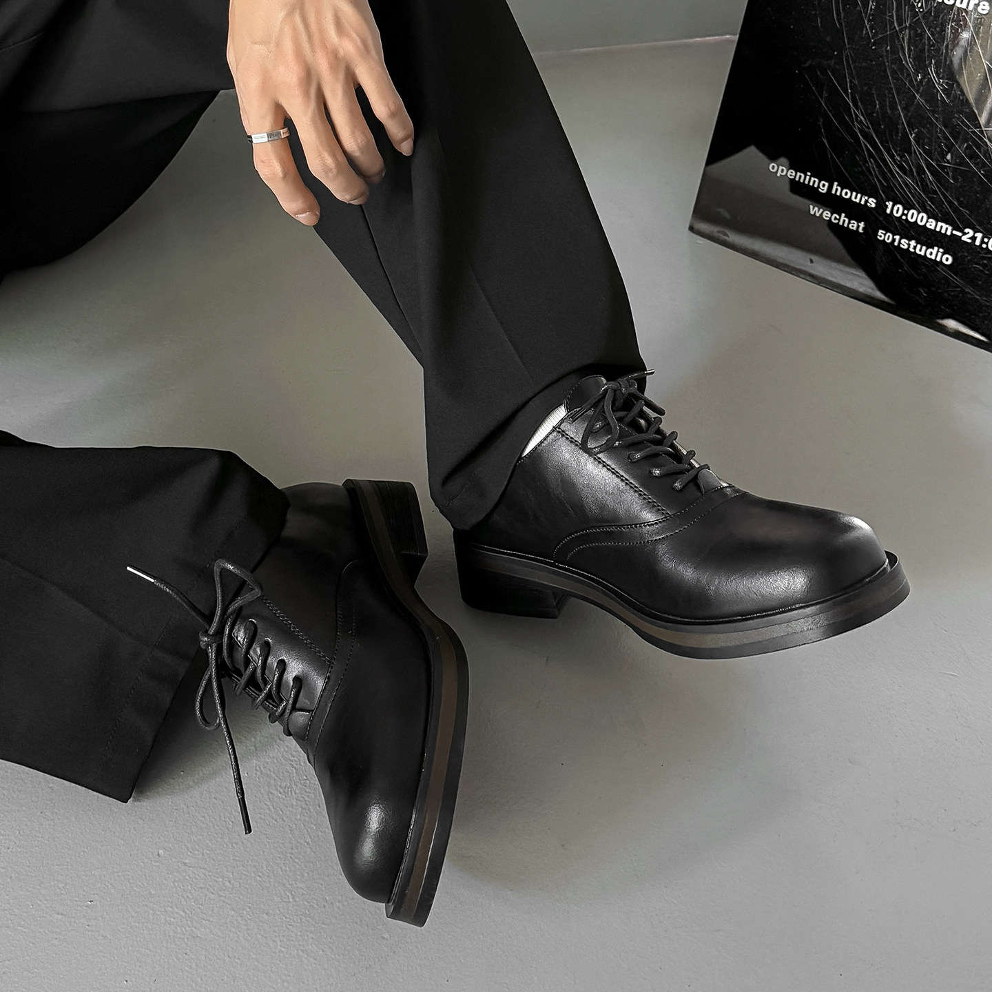 📚 英伦风德比鞋男款厚底增高休闲方头结婚皮鞋Cleanfit商务正装鞋子