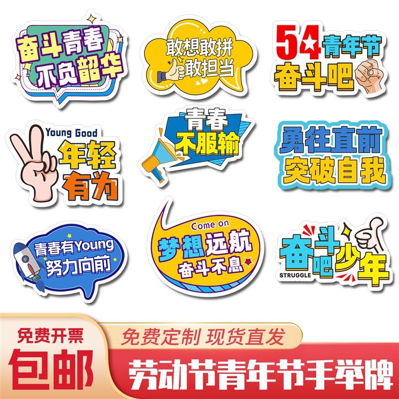 📚 五一劳动节五四青年节公司团建手举牌拍照手拿牌广告牌道具KT板