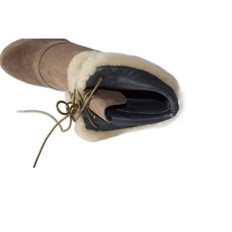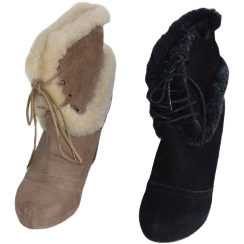 📚 圆头坡跟磨砂牛皮系带短筒女靴春秋绑带高跟里外全皮靴子2755609