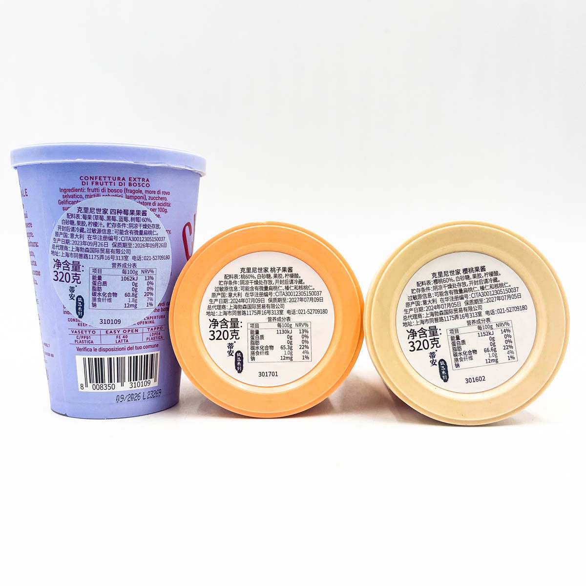 📚 临期意大利进口克里尼世家桃子樱桃四种莓果果酱320g涂抹早餐品