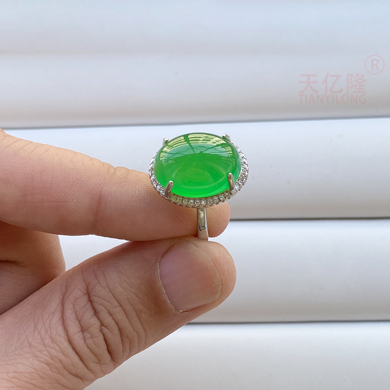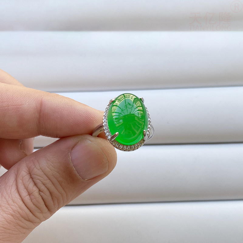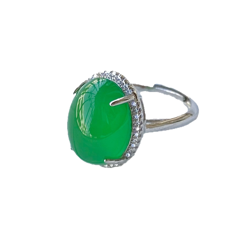 📚 天然冰种玉髓戒指女款翡翠色首饰碧玉色镶嵌宝玉石冰透绿玛瑙指环