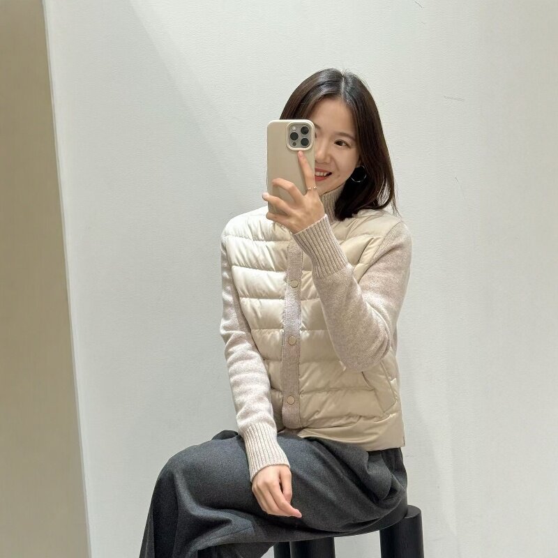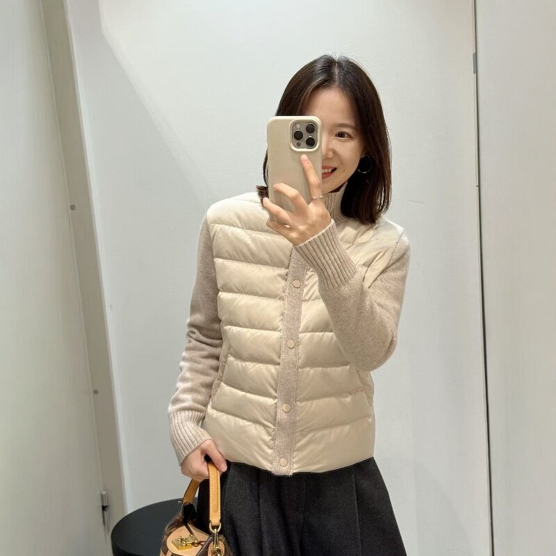 📚 2025秋冬新款韩系简约立领拼接针织袖棉服外套百搭显瘦休闲裤套装