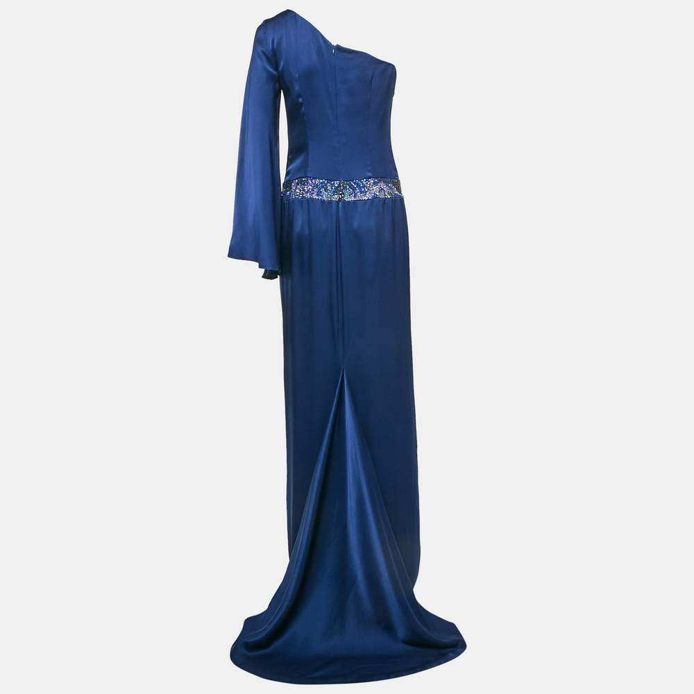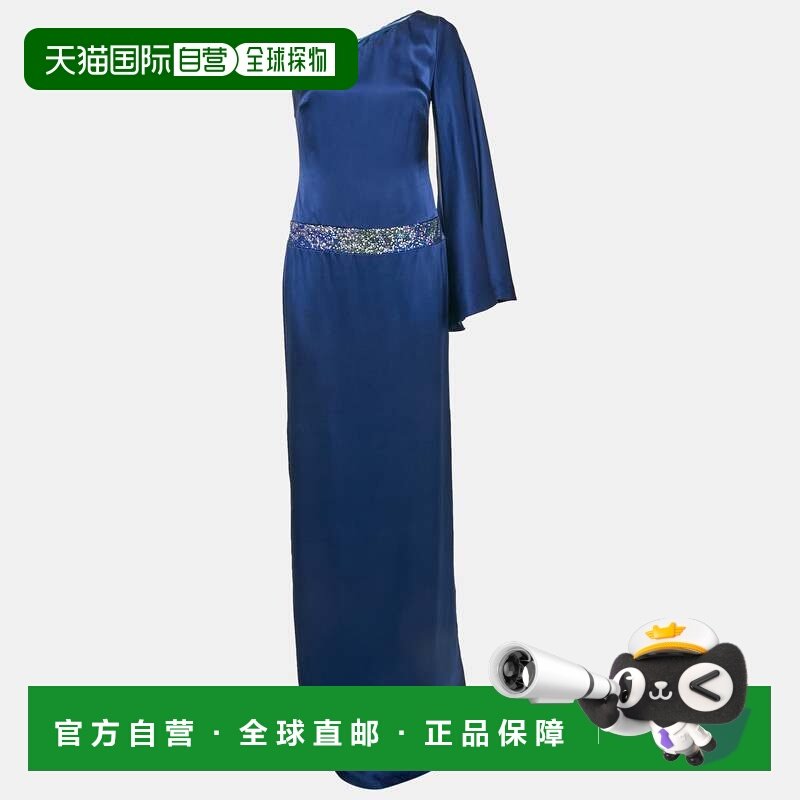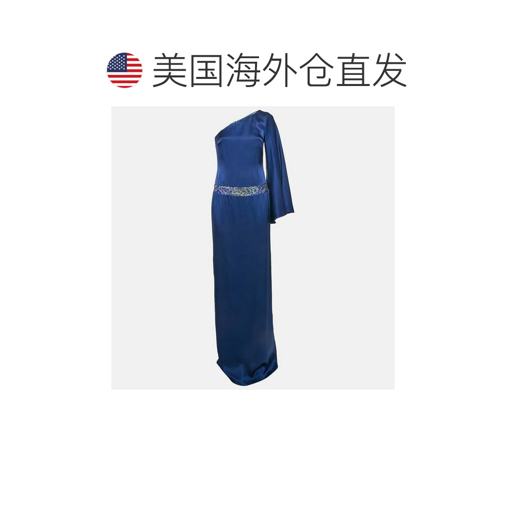 📚 自营Nicole Miller Blue Sequin Embellished Satin Silk One Sho
