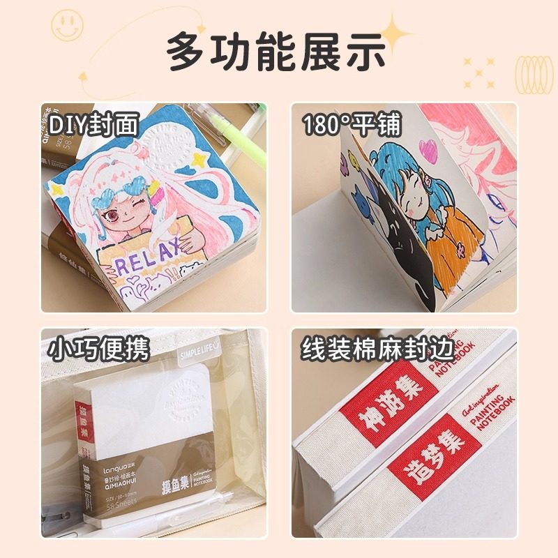 📚 蓝果奇妙绘摸鱼集绘画本涂鸦素描水彩本子空白加厚儿童小学生画画本丙烯马克笔专用涂鸦写生素描纸旅行便签