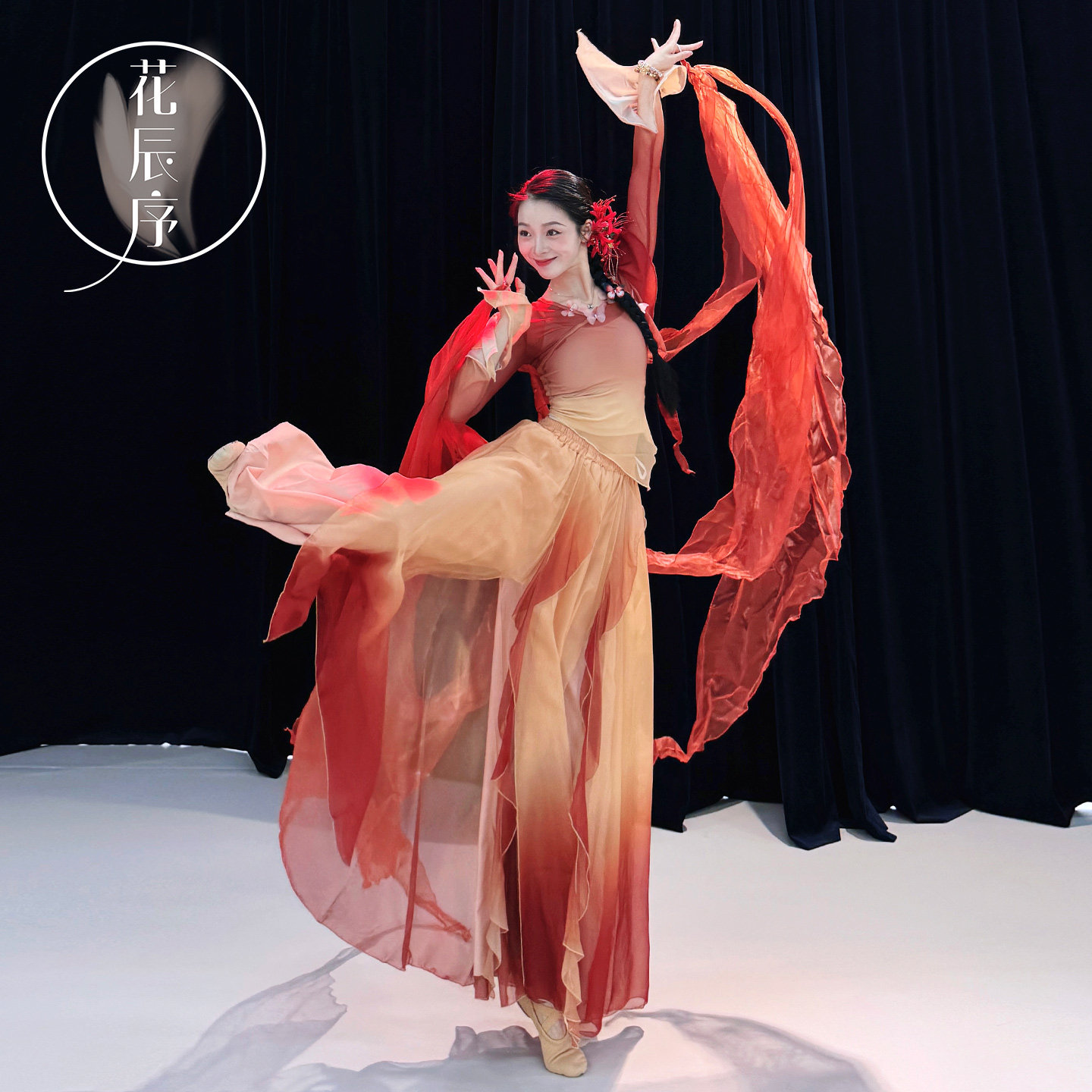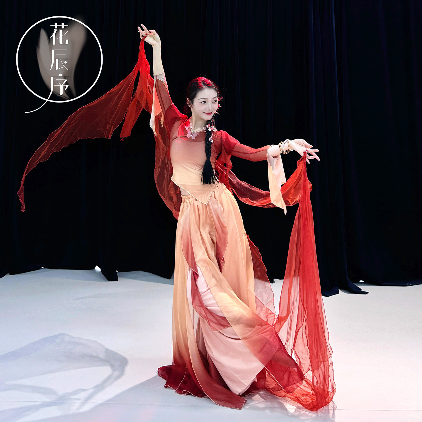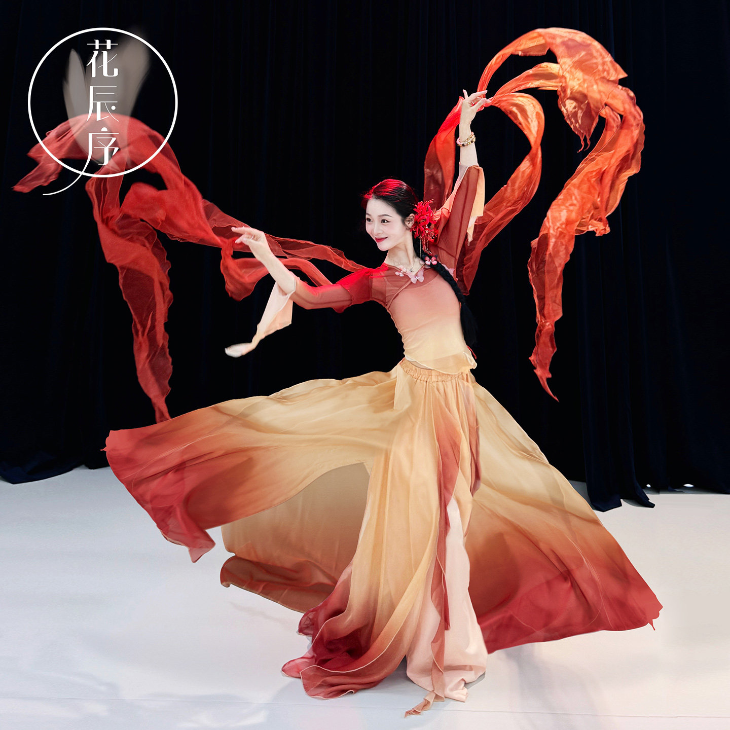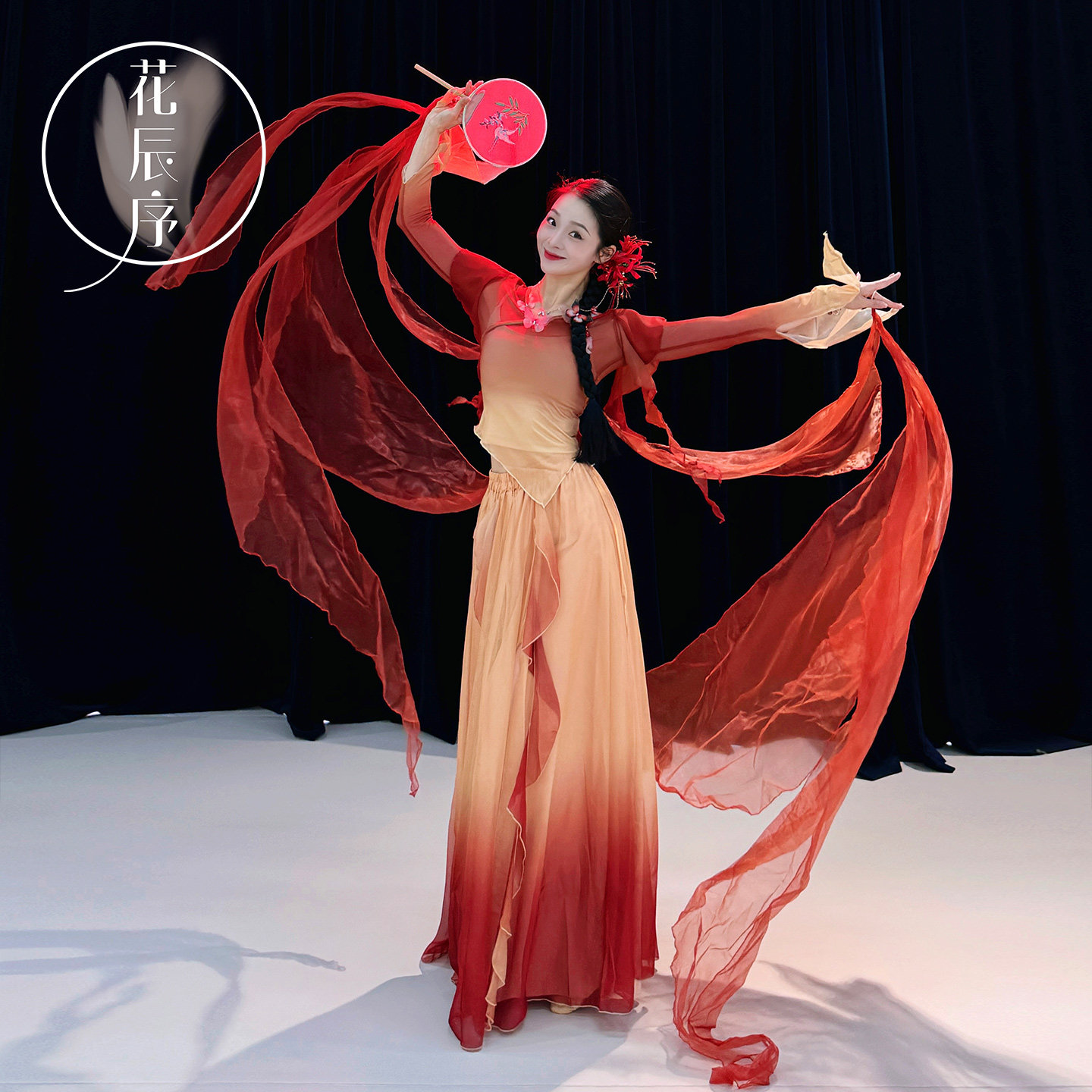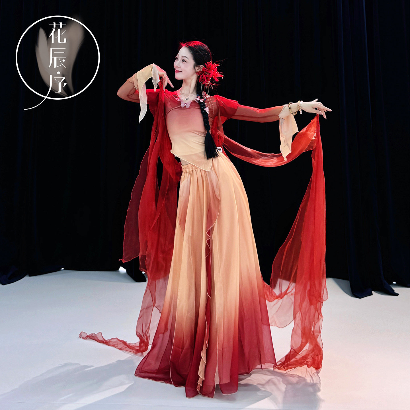 📚 花辰序古典舞身韵渐变舞蹈服绝美红色飘逸仙气大摆裙中国舞演出服