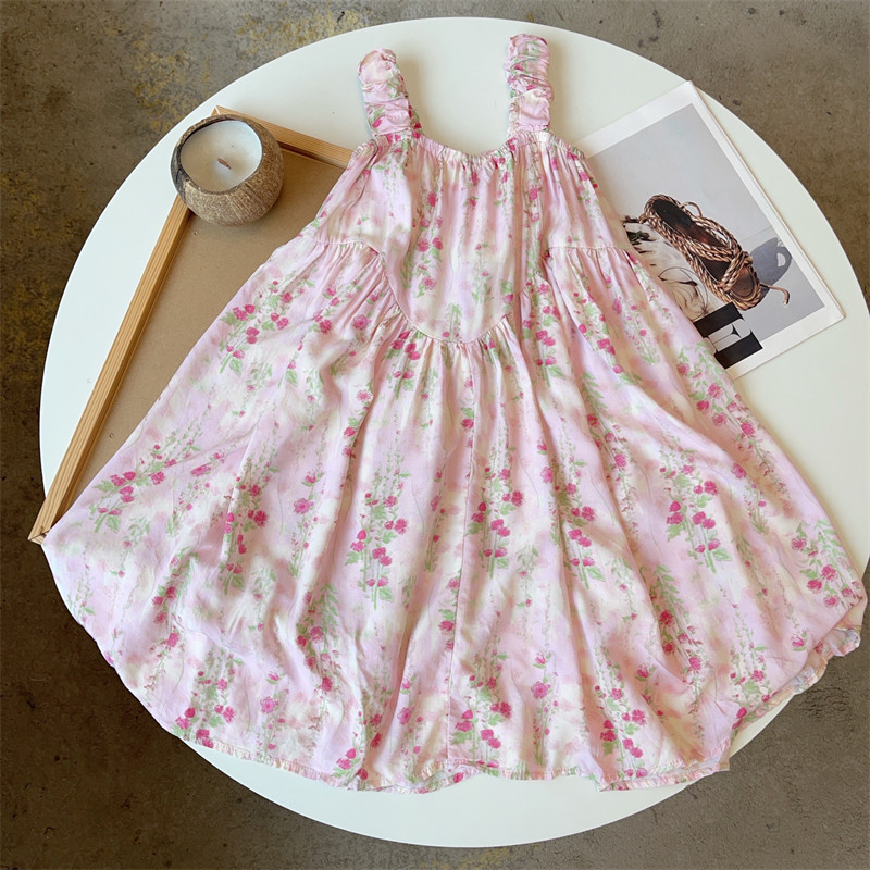 📚 儿童薄款棉绸连衣裙女童吊带裙子宝宝无袖裙子中大通碎花长裙夏季