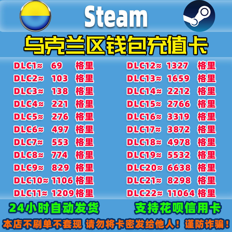 📚 Steam乌克兰充值卡钱包余额充值码乌克兰UAH钱包余额礼品卡充钱码