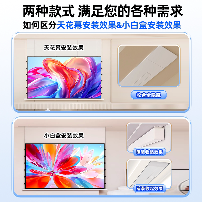 📚 绿极嵌入式投影幕布隐藏式天花幕菲涅尔抗光3D/4K/8K超高清家用光子电动拉线投影仪屏幕智能语音联动自动升降