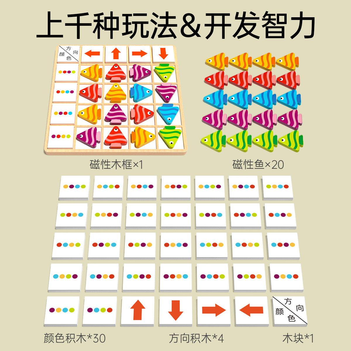 📚 磁力小鱼找方向3到6岁形状配对积木桌游大脑逻辑思维训练益智玩具