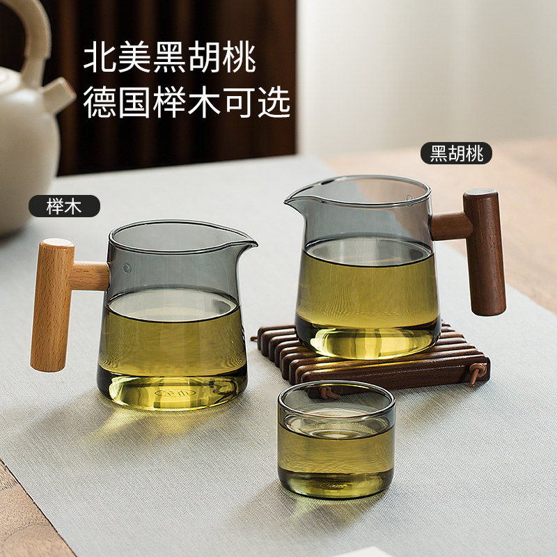 📚 木笙玩物主人公道杯玻璃高档茶壶带手柄茶海单个倒茶公杯分茶器