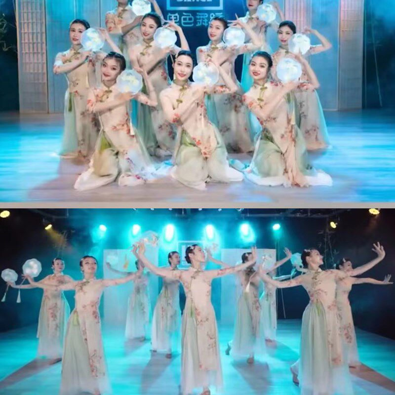📚 人间烟火舞蹈服初中生高弹力旗袍裙新款中国风古典舞声声慢演出