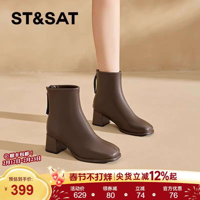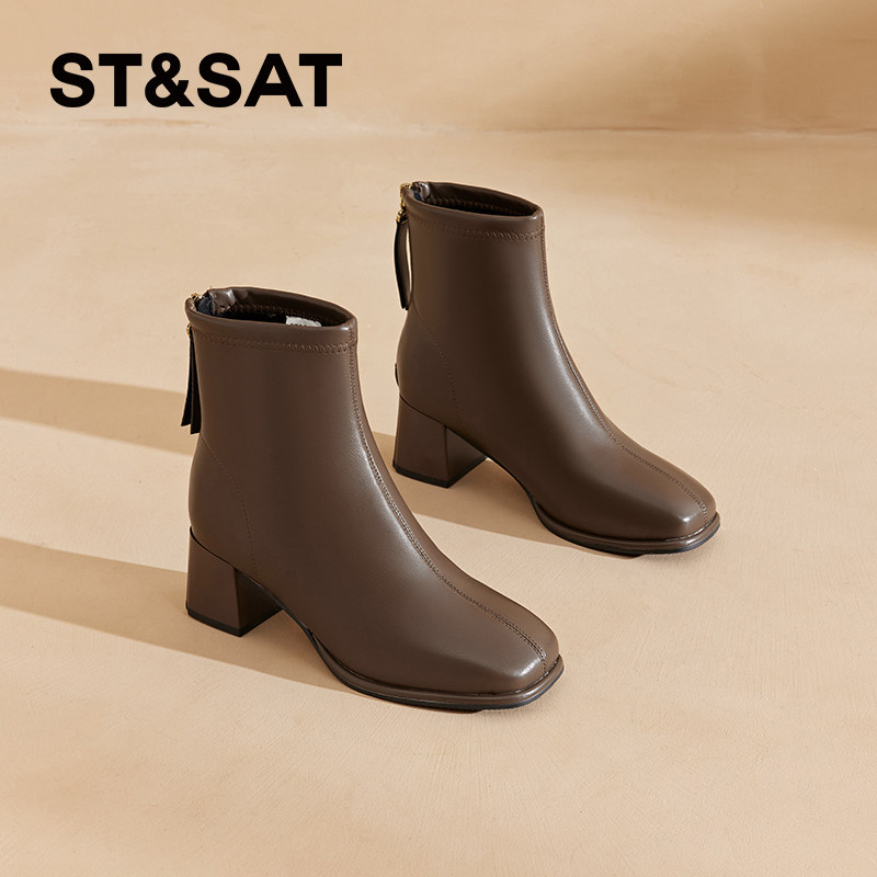 📚 星期六短靴女靴子2025新款秋冬加绒高跟瘦瘦靴粗跟单靴切尔西靴女
