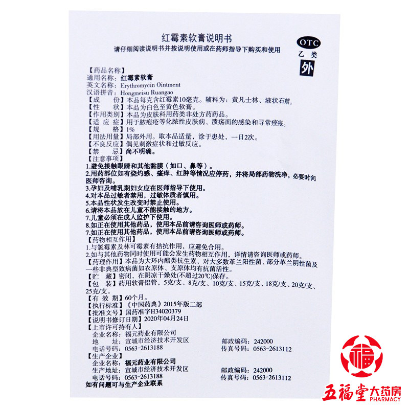 📚 包邮】福元红霉素软膏10g脓疱疮溃疡寻常座疮皮肤病乳膏药膏正品