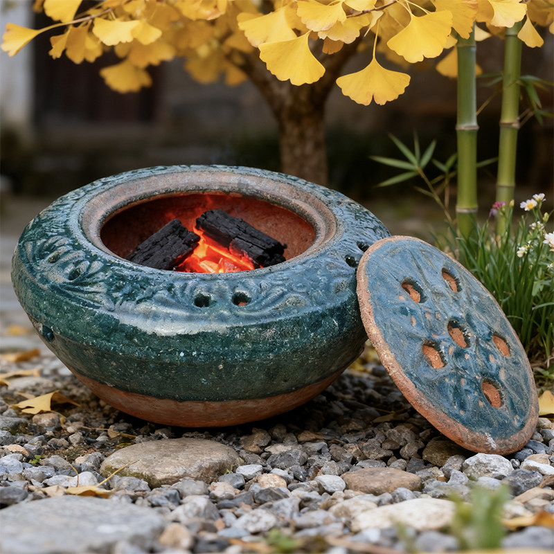 📚 陶火盆陶火缸子火钵子陶制风炉传统老式木炭炉复古火盆烤火炉取暖