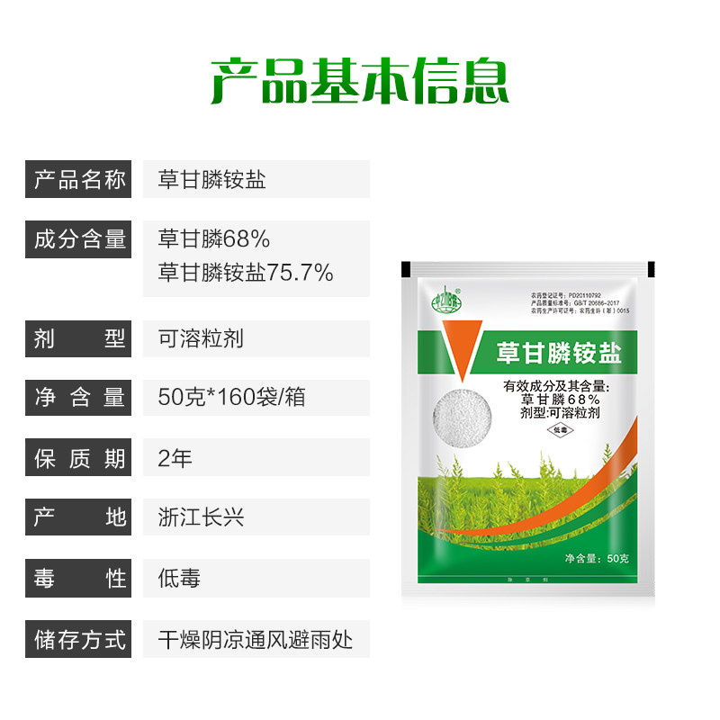 📚 中保68%草甘膦铵盐粉剂757草甘磷除草果园荒地烂根剂农药除草剂