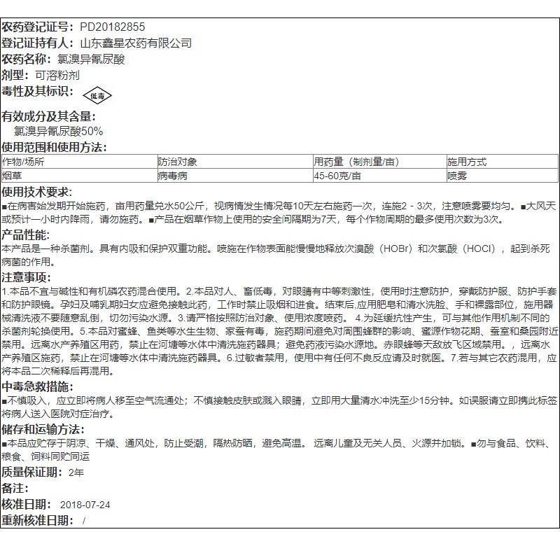 📚 鑫星 50%氯溴异氰尿酸烟草病毒病霜霉病软腐病细菌真菌农药杀菌剂