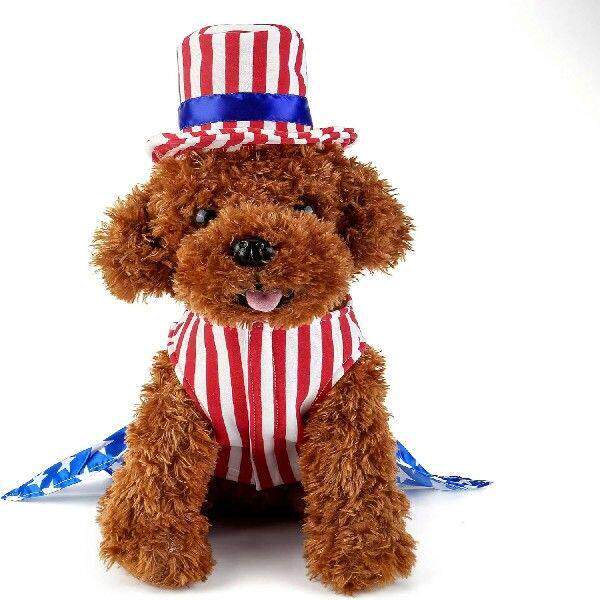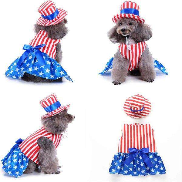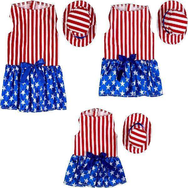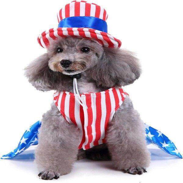 📚 Large Patriotic Striped Dog 4th of July Costume and Hat,