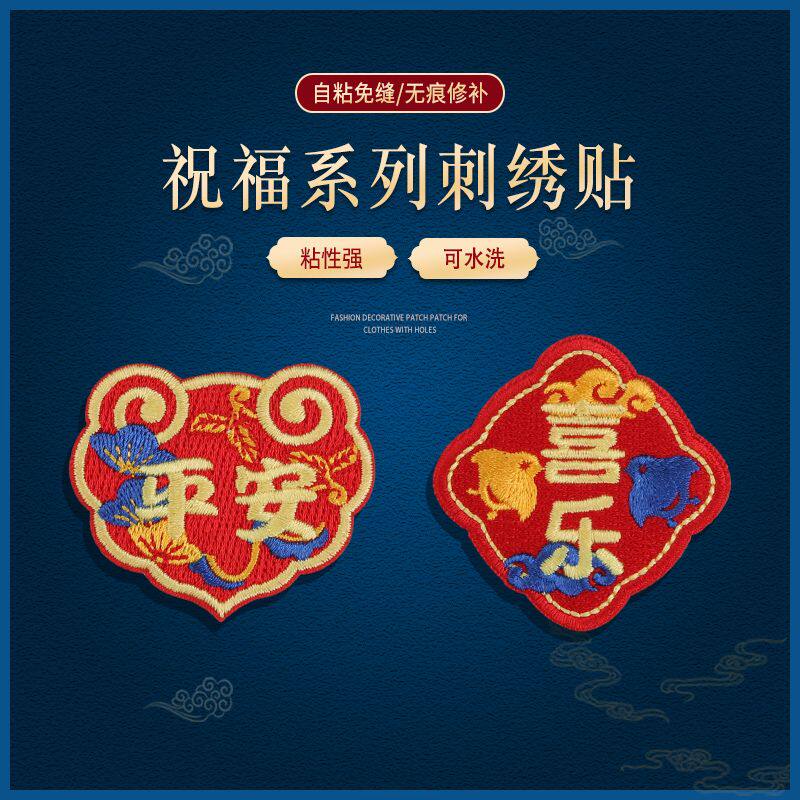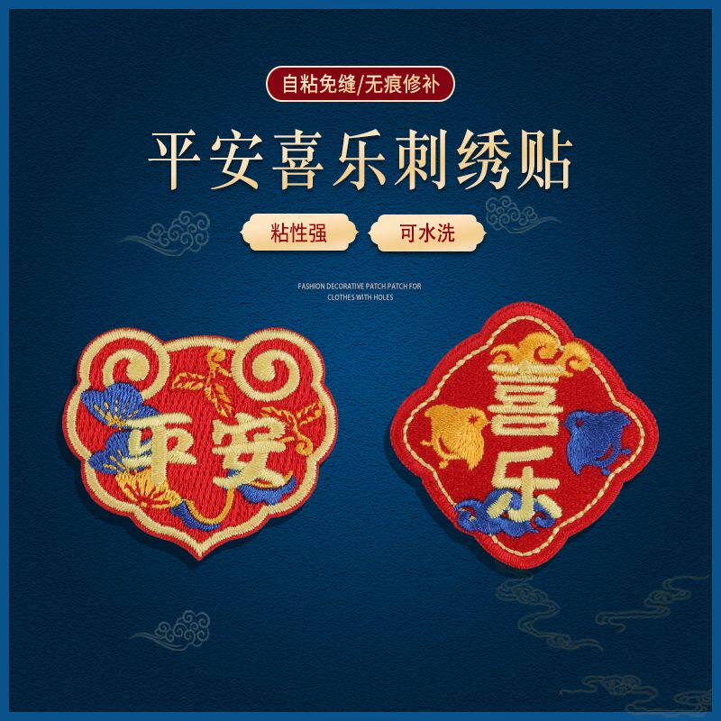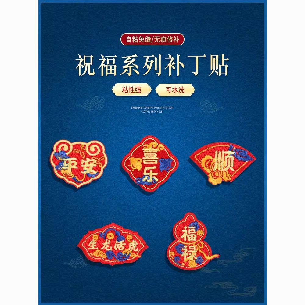 📚 南方生活自粘平安喜乐刺绣贴新年衣服装饰贴花羽绒服破洞补丁贴红