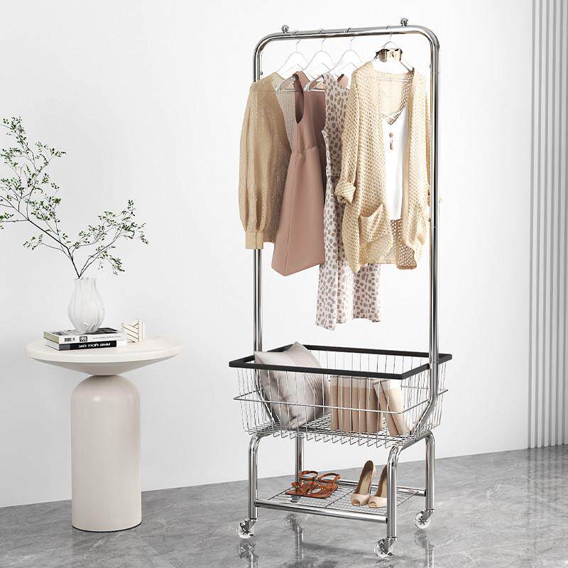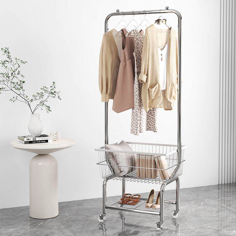 📚 服装店展示架可移动带轮货架落地衣帽架带篮直播间陈列女装挂衣架