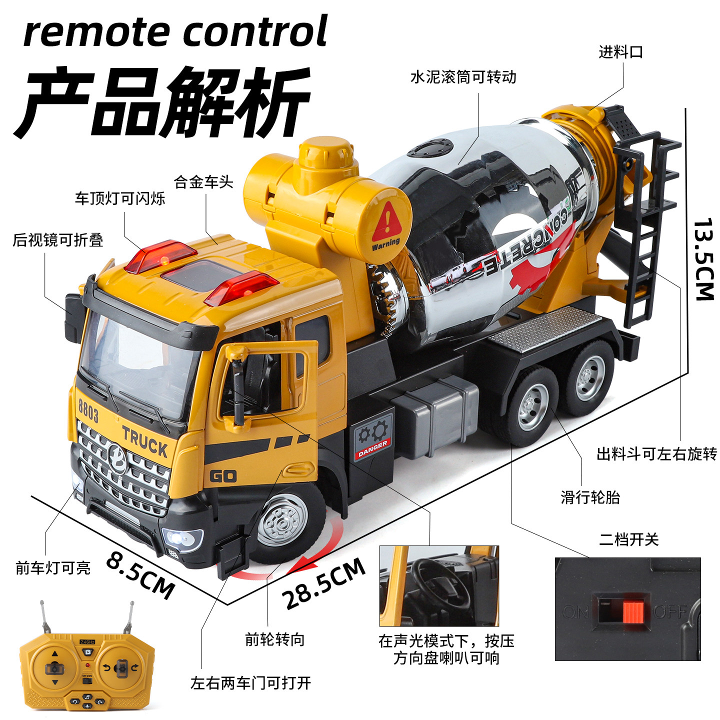 📚 遥控儿童水泥搅拌车玩具大号合金电动混凝土工程车男孩六一节礼物