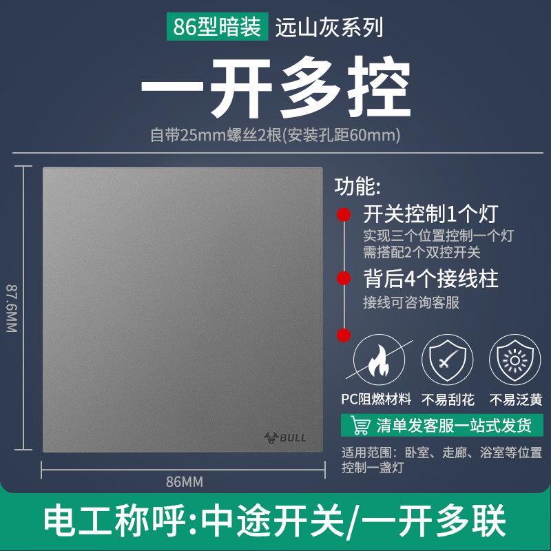 📚 公牛G56三开多控远山灰色超薄三控中途开关三联两G57多联86型暗装
